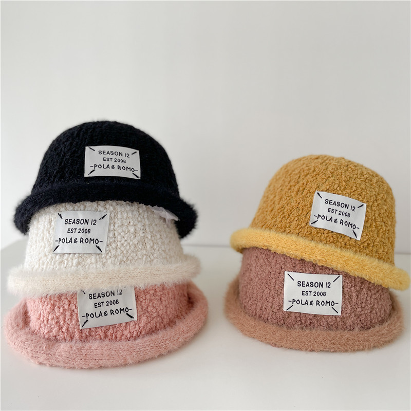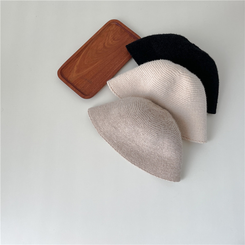 道誉秋冬子供帽子ニット巻き縁バケツ帽子単色子供帽子韓国版子供バケツ帽子盆帽子