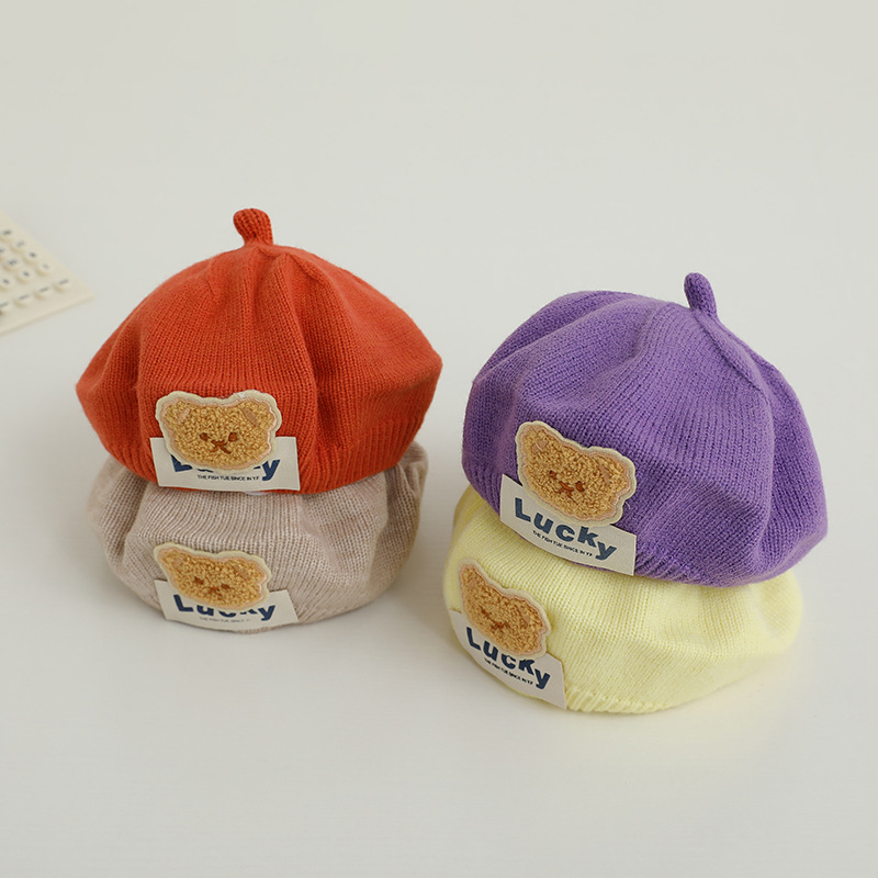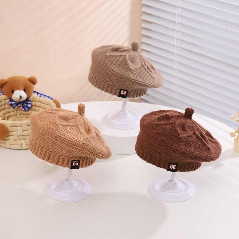道誉韓国の子供の帽子秋冬の新型の韓国版の女の子は木の葉のベレー帽の復古の女の子の画家の帽子を編みます。