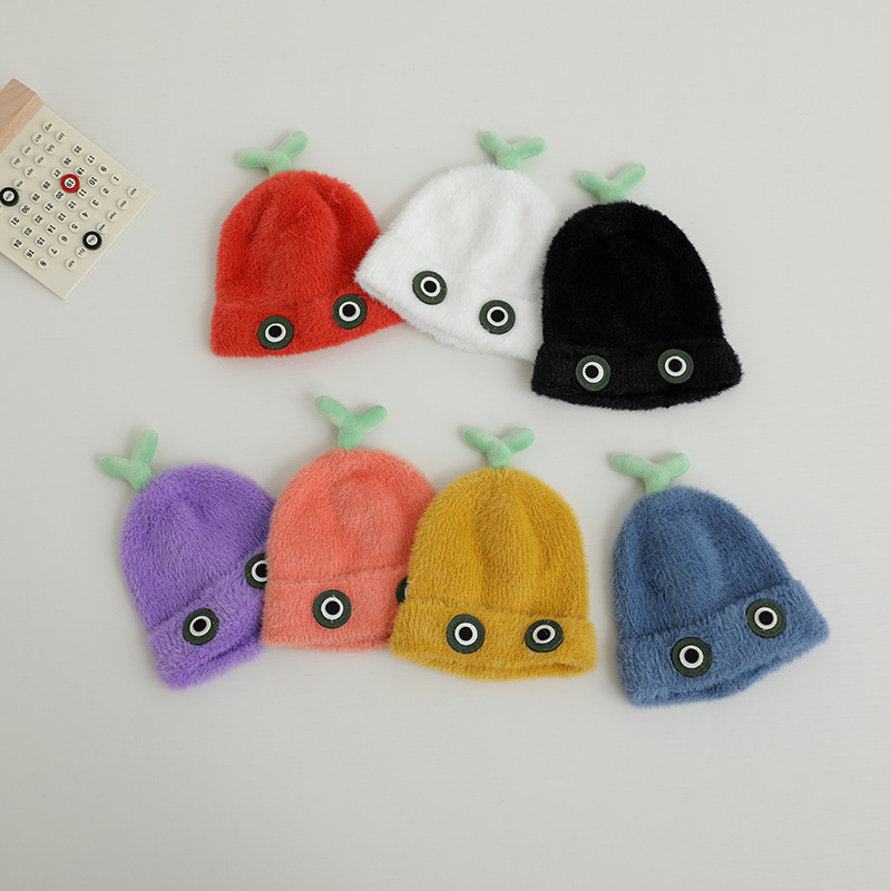 Ins秋冬子供毛糸帽子女の子かわいいもやし大きな目模造ミンクニット帽子男女キャップ