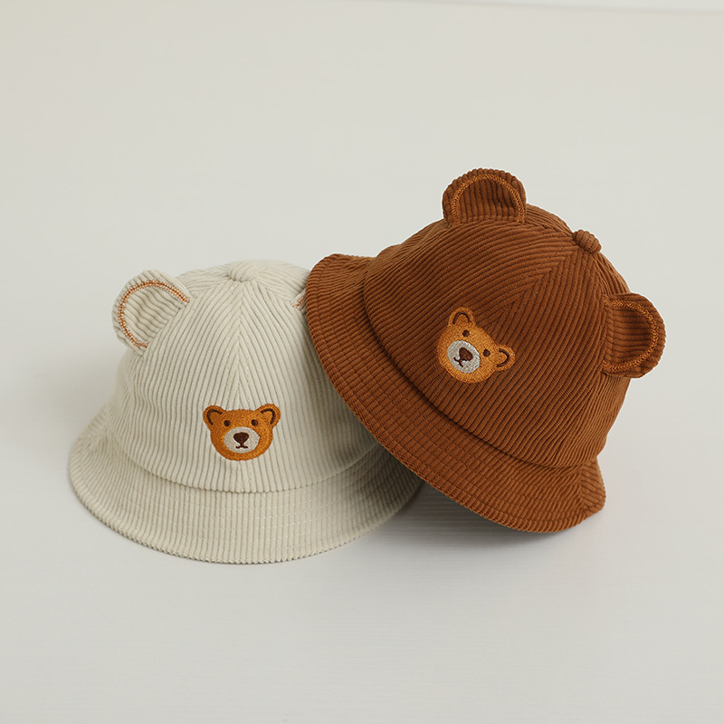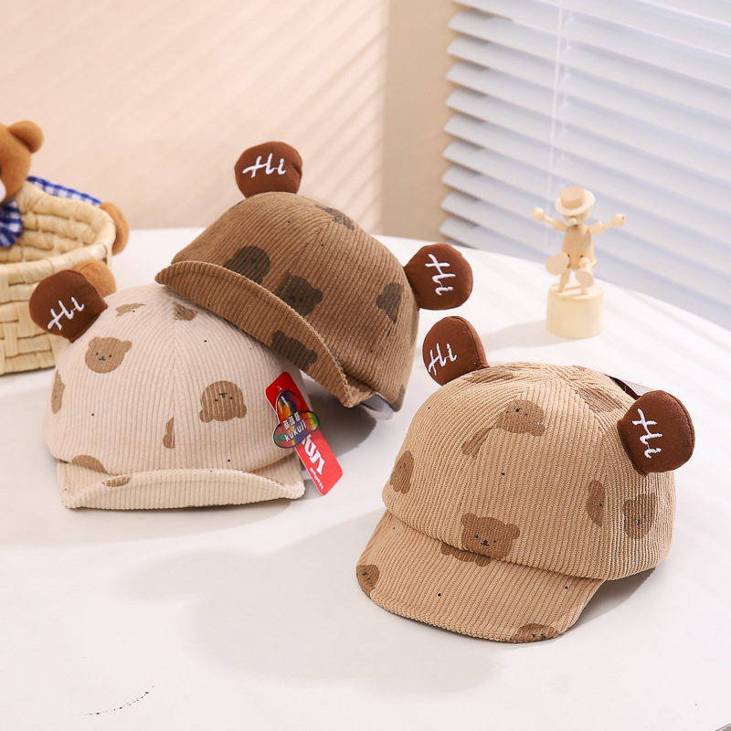 赤ちゃんの帽子秋冬韓国版漁師の帽子のプリントの熊の男女の子供の日よけの帽子のコーデュロイの赤ちゃんのアヒルの舌の帽子