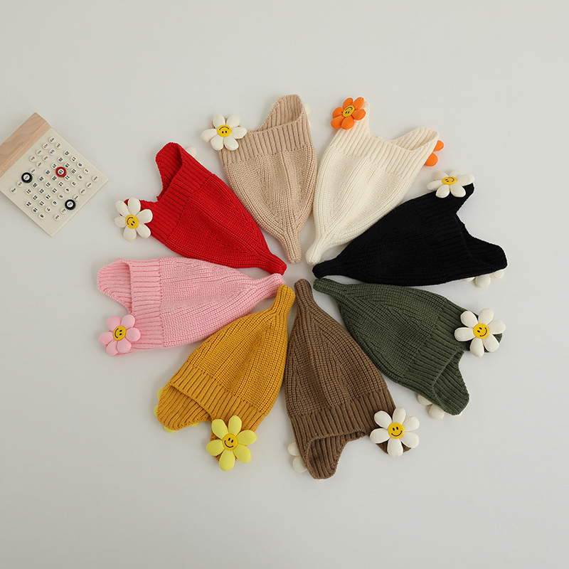 韓国ins赤ちゃん毛糸帽子秋冬ニット保温赤ちゃん笑顔太陽花帽子洋気百合