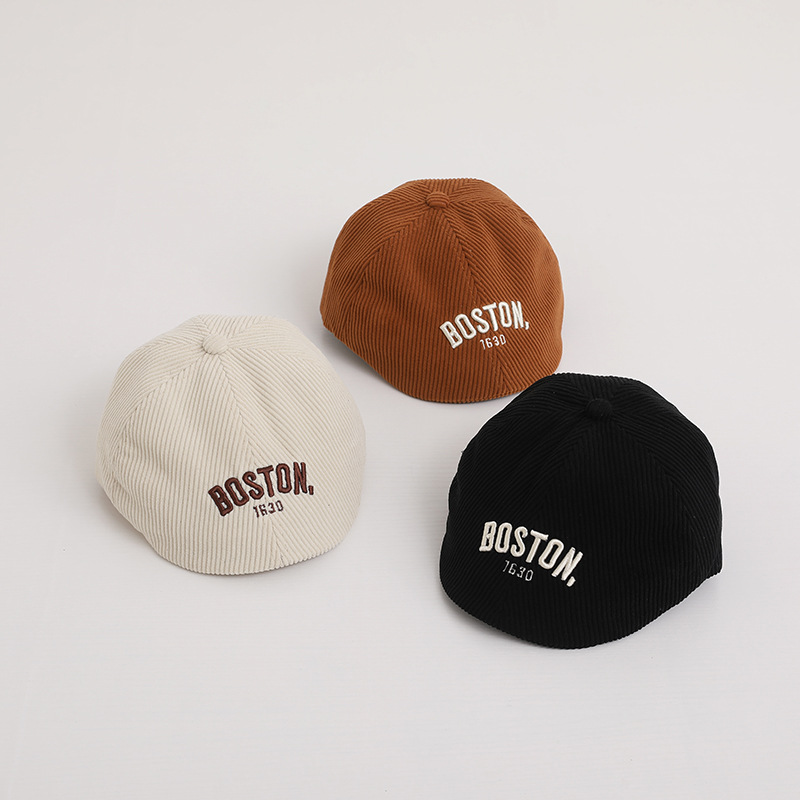 子供の前に帽子の英語のアルファベットの刺繍の子供の純色の凹形のコーデュロイのアヒルの舌の帽子の赤ちゃんのベレー帽