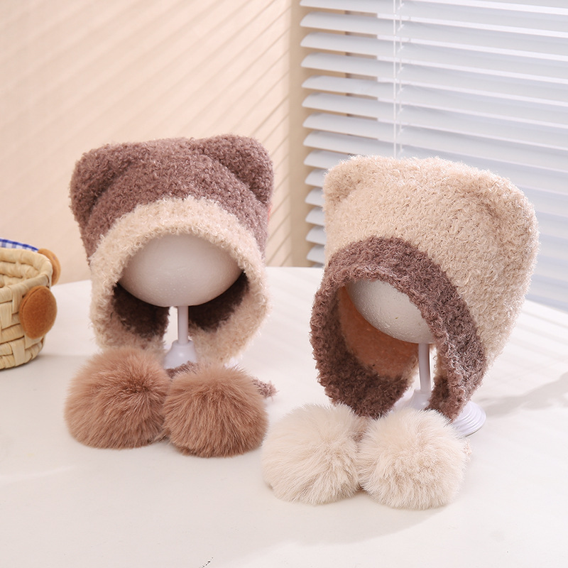 韓国版秋冬子供メリヤス毛玉帽子韓国版男女子供の耳が開いています。