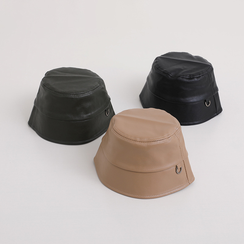 道誉秋冬pu単色帽子子供帽子韓国版子供バケツ帽子漁師帽子皮質子供盆帽子