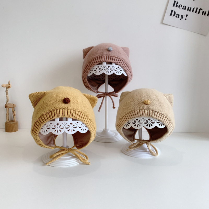 Ins風かわいい小さな毛球耳猫子供赤ちゃんニット保温耳保護帽子赤ちゃん毛糸