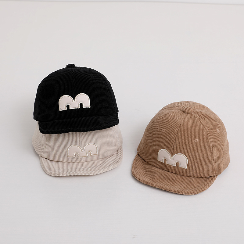 子供の帽子の男女の赤ちゃんの韓国版の野球帽のカジュアルな英語のアルファベットのmコーデュロイの柔らかい乳幼児のアヒルの舌に沿って