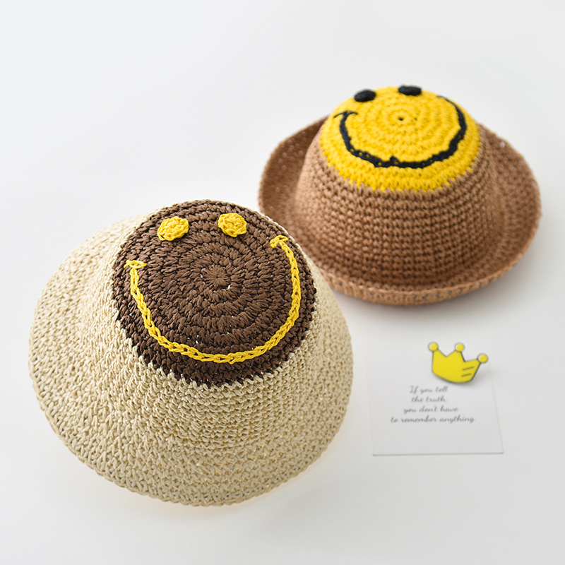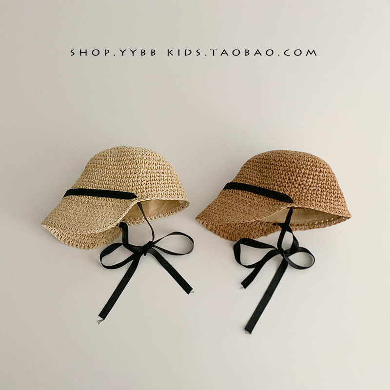 Insは夏の赤ちゃんの麦わら帽子を爆発させました。韓国の赤ちゃんは0-2歳のかわいい形の日よけ日焼け止め帽子防風帽子です。