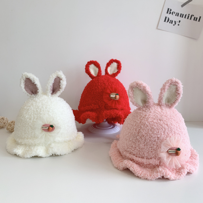 道誉ins日韓版同型児童ウサギ長耳ニット盆帽秋型毛糸帽簡単百合女