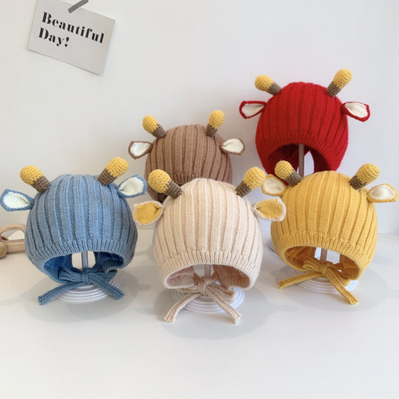 Ins風かわいい耳鹿角耳猫子供赤ちゃんニット保温耳保護帽子赤ちゃん毛