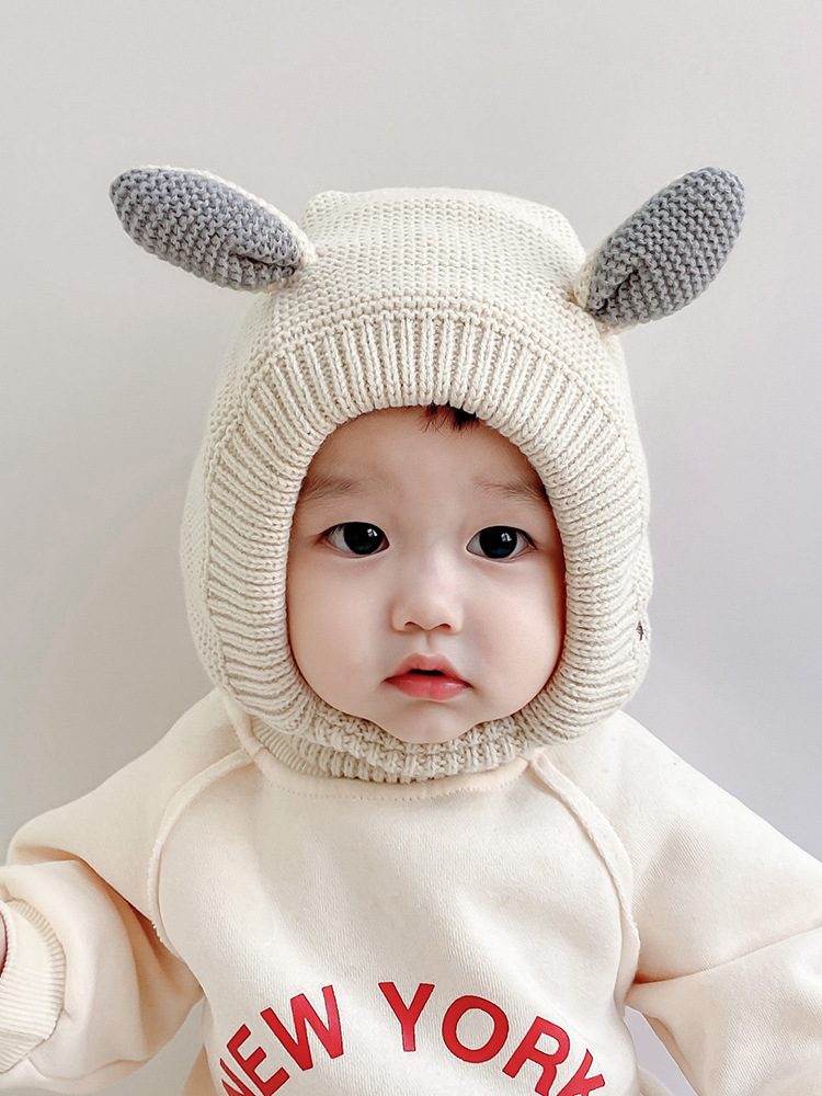 国境を越えて秋冬純色のかわいい丸い耳の子供の耳保護ニット帽乳幼児保温毛糸帽を生放送する