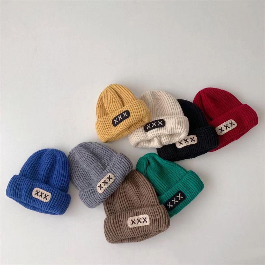 韓国版男女子供赤ちゃん秋冬r毛糸帽子ins純色シンプルな子供保温ニット帽子潮