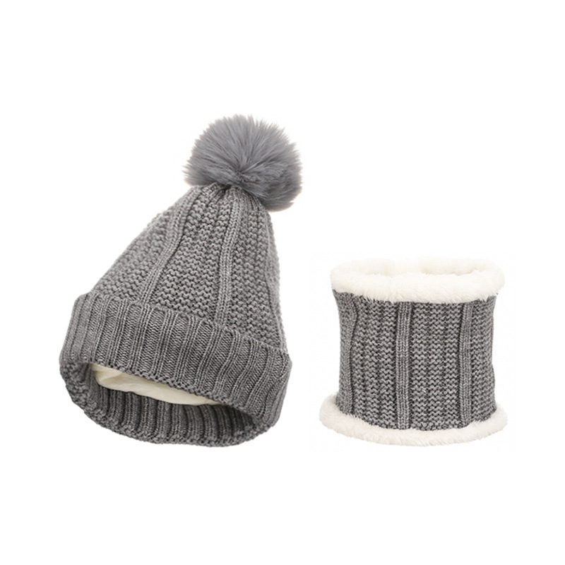 新型帽子マフラーセット冬ベルベット耳保護保温赤ちゃん冬帽子乳幼児防寒マフラー純色帽子