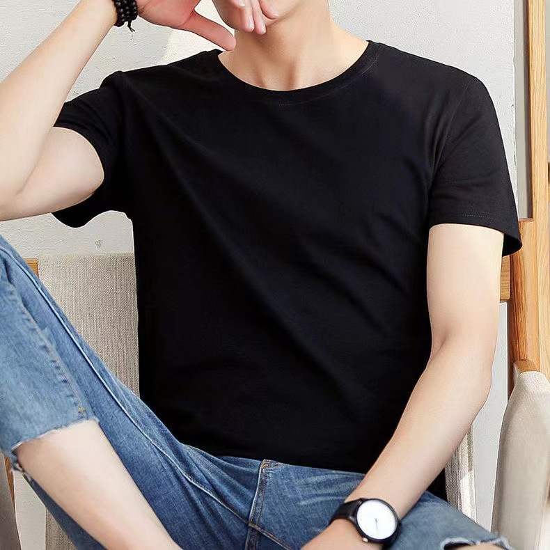 夏の新型半袖半袖tシャツ男性弾力丸首白いスウェットメンズtシャツ卸売り