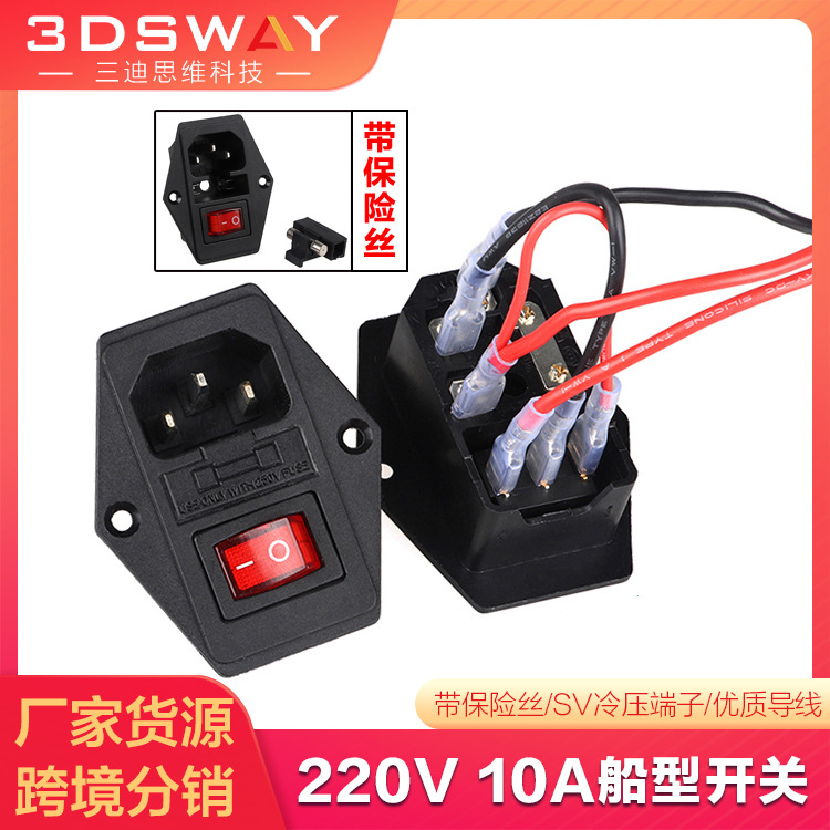 3dsway 3dプリンタアクセサリ110v/220v 10a電源船型スイッチソケットヒューズ付きdiy