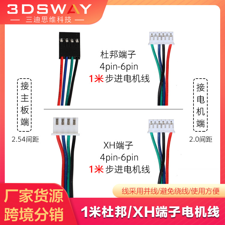 3dsway 3dプリンタ付属品1メートル42ステッパーモーター线hx2.54mmデュポン端子4pin-6pin