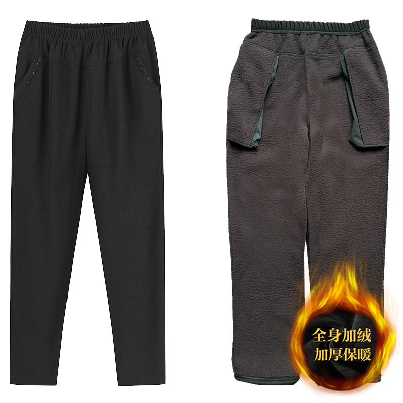中高年のお母さんは秋冬の保温ズボンとベルベットを入れて一体のベルベットのカジュアルパンツを厚くして、おばあちゃんはストレートを着ています