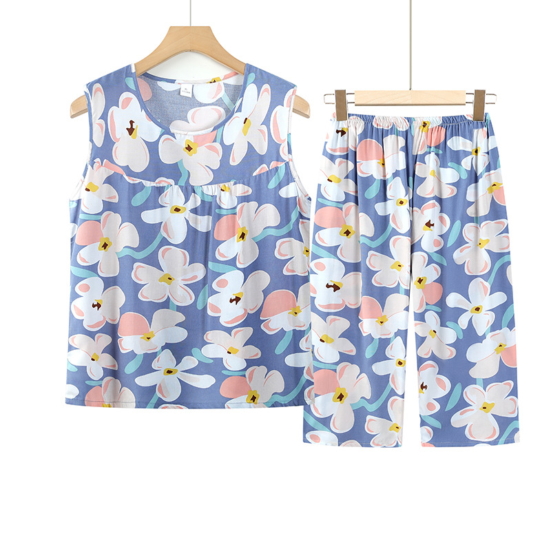 2025 新しい中高年マザーズベストツーピースコットンシルクトップ女性の夏のおばあちゃん薄いクールスーツ