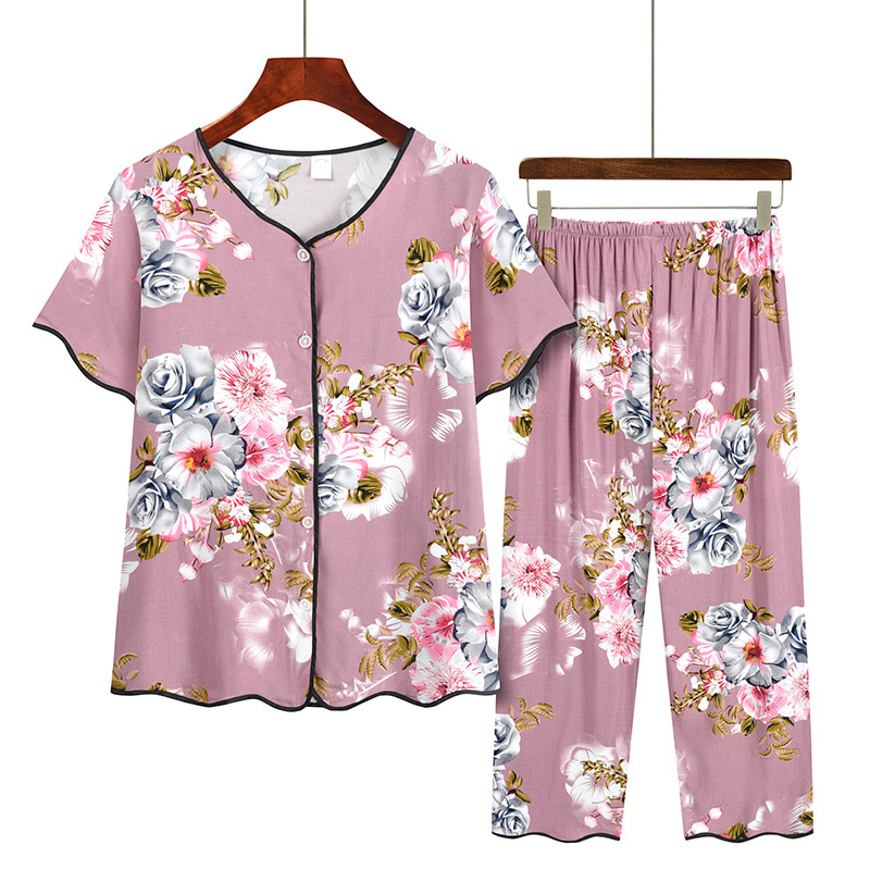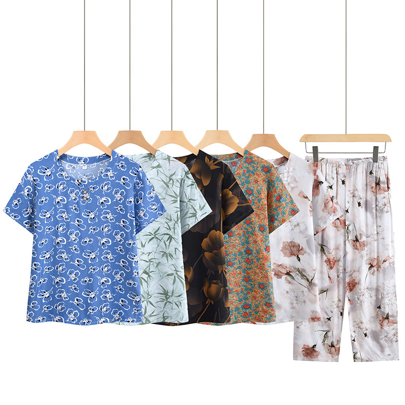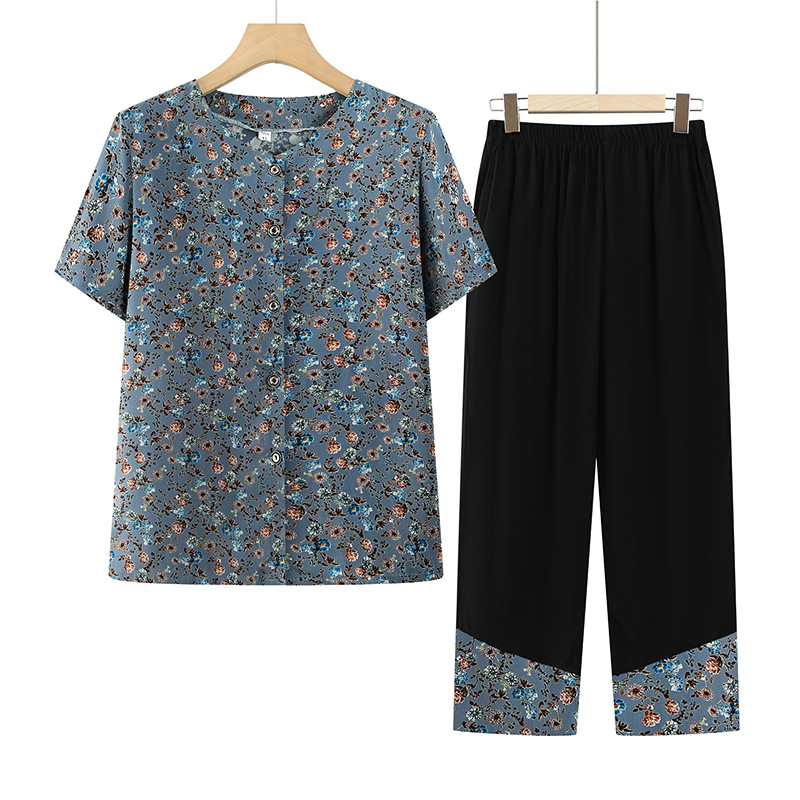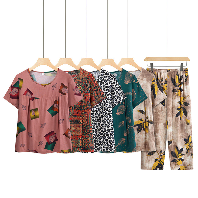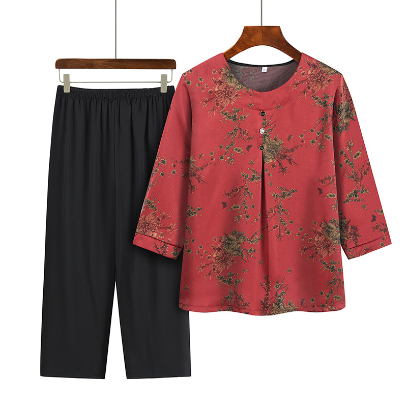 おばあちゃん夏服カジュアルスーツ中高年半袖tシャツ女性40-60歳お母さん服おばあさん薄手2点セット