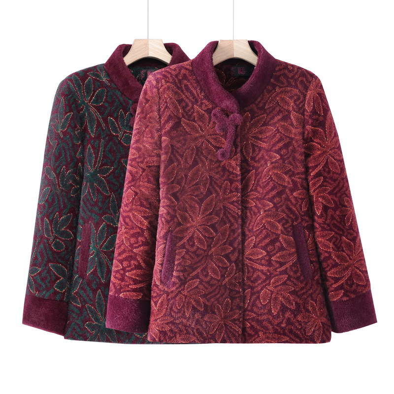中高年の女性の秋冬の新型のゆったりしたコートのお母さんは長袖の上着のおばあさんとベルベットを着て服を厚くします。