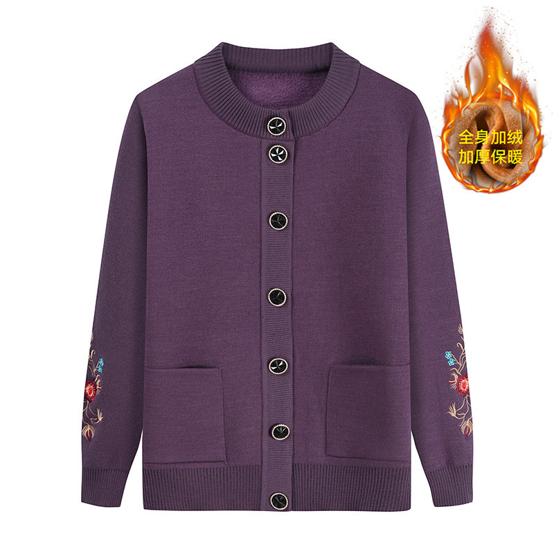 中高年のお母さんは秋冬の保温ニットの上着を着ます。
