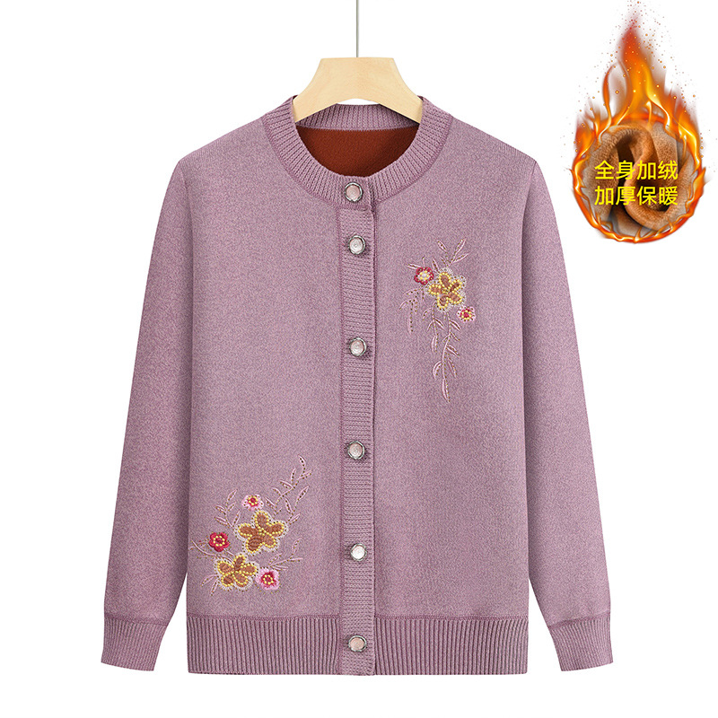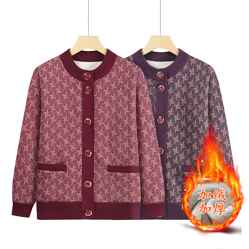 中高年のおばあさんのセーターのお母さんの服とベルベットの厚いニットのカーディガンの秋冬のコートの保温のおばあさんの服の女性