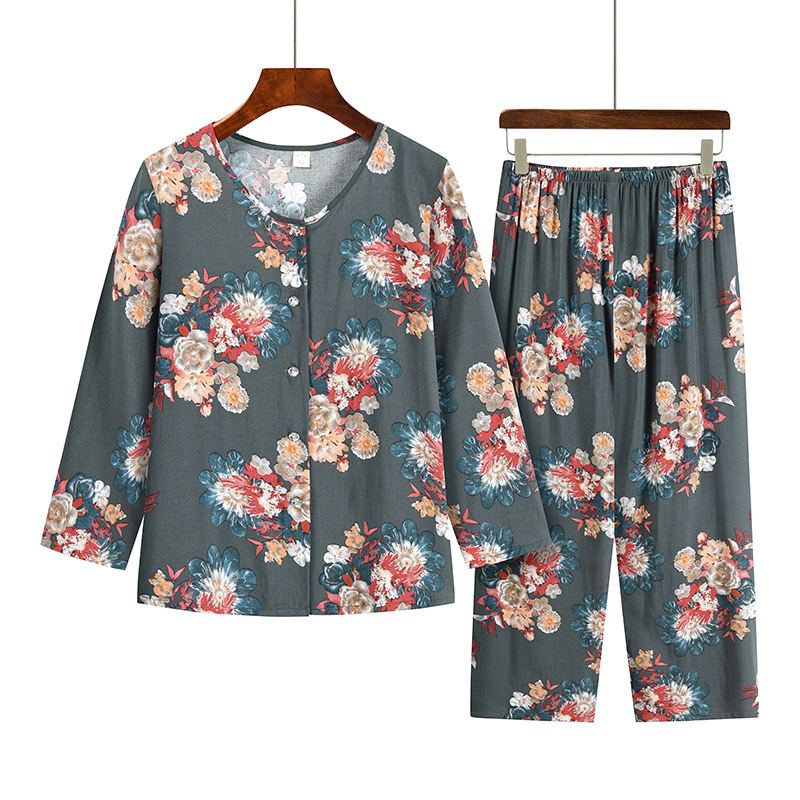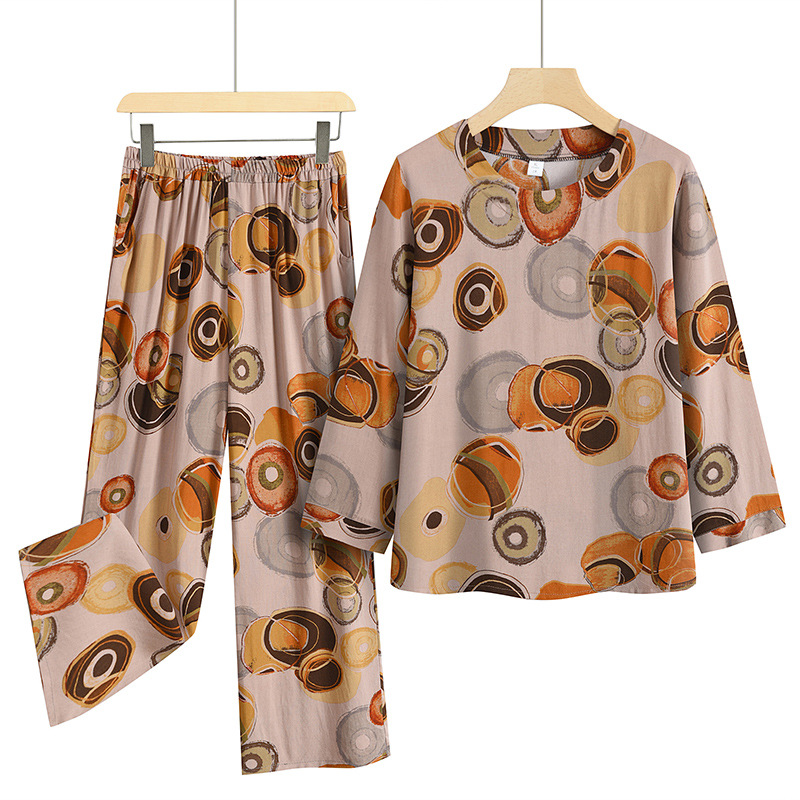 中高年春秋ママ長袖2点セット夏カジュアルスーツ老人ゆったり涼しいプルオーバー女性