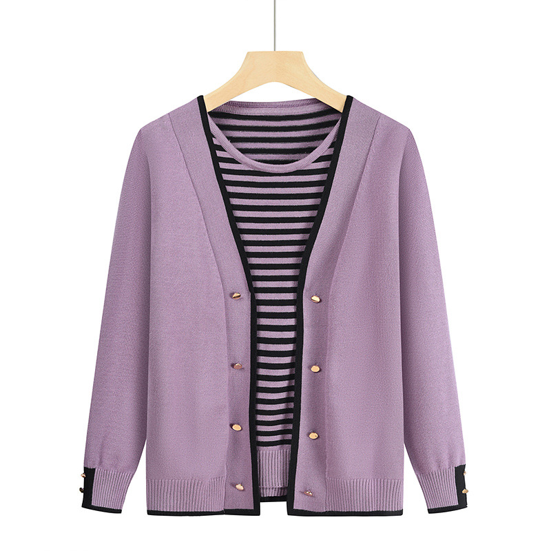 中高年の春の服の女性のニットのカーディガンのお母さんの丸首のカーディガンの快適な2セットの上着の中年の服のコート