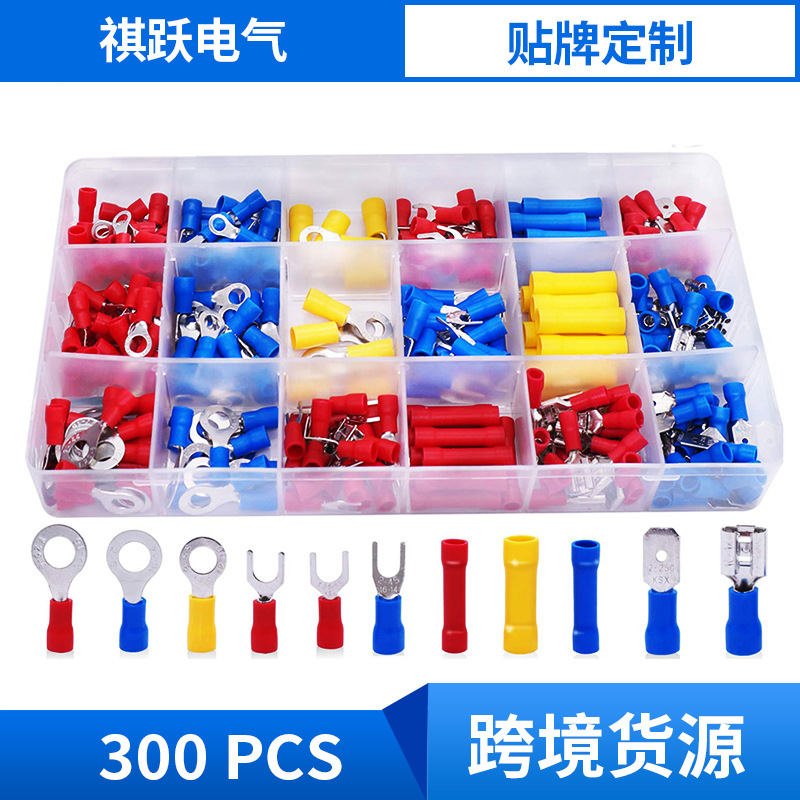 冷間圧接線端子300pcs箱入りオス母事前絶縁接続端子セット銅鼻端子
