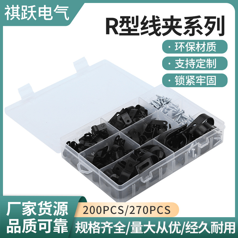 R型ナイロン線クリップケーブル固定クリッププラスチック線クリップケーブル200pcsセット