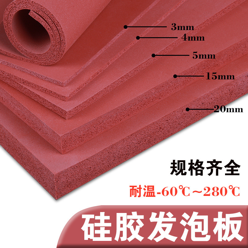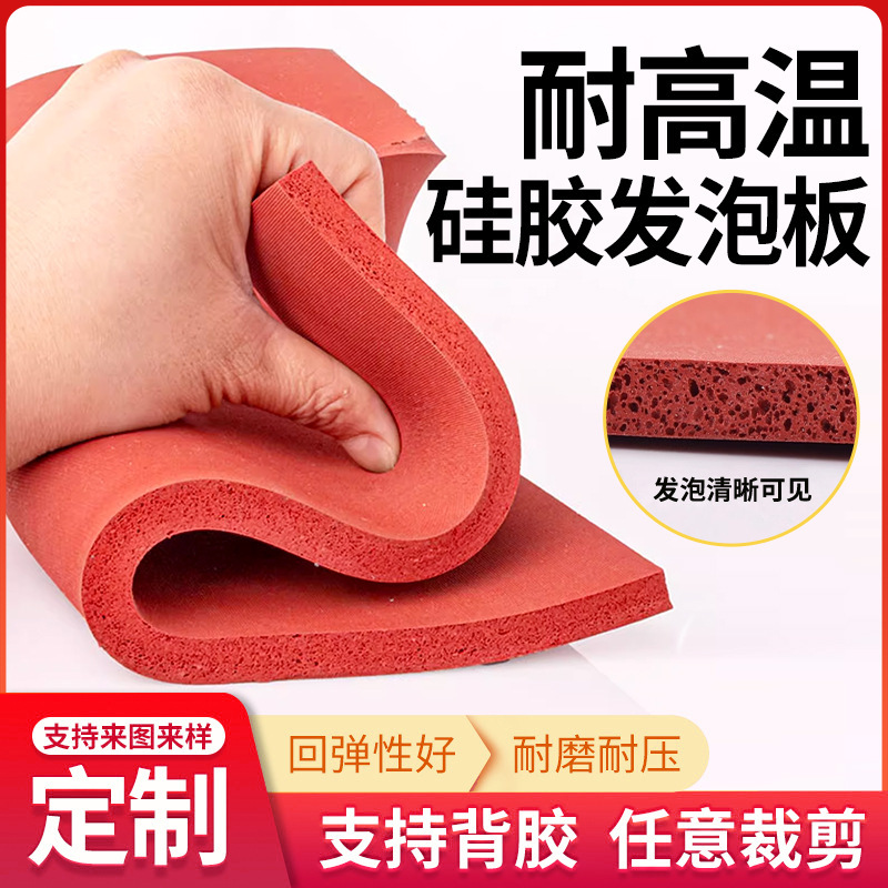 メーカー直販シリカゲル発泡マット粘着式3mバックゴムシリカゲル発泡板赤色発泡ゴム板高温密封