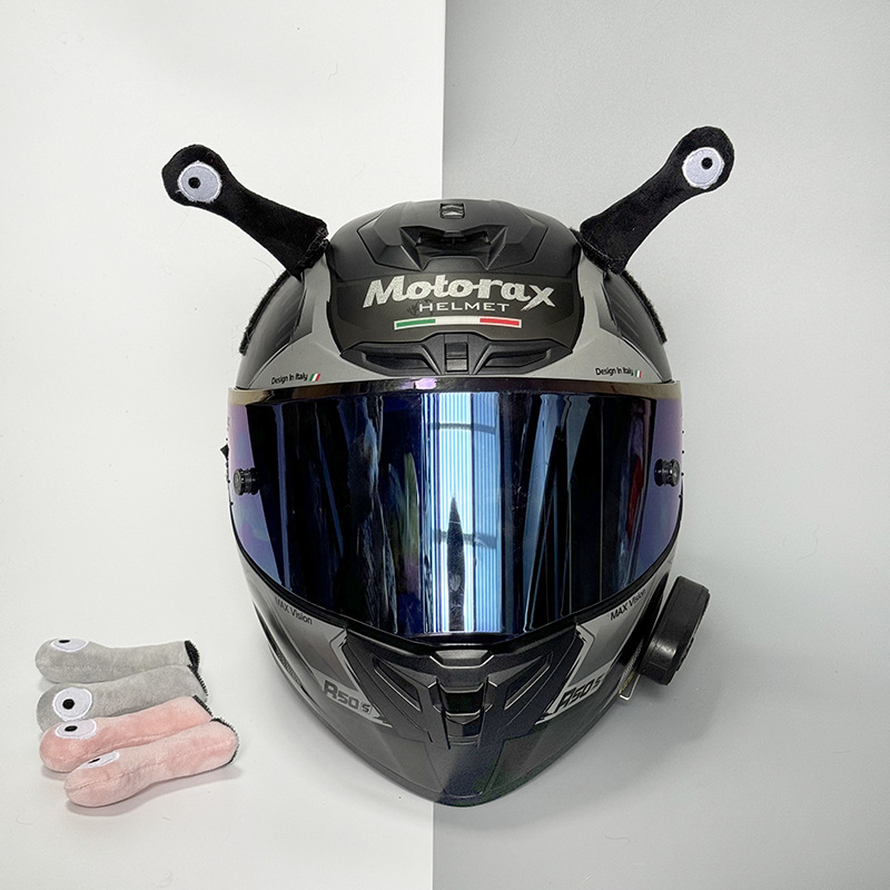 電気自動車のヘルメットの装飾カラーの目のソーセージの口の部品のオートバイのヘルメットの人形はマジックテープを貼って速く卸売りを分解します。