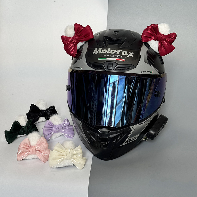 電気自動車のヘルメットの装飾猫の耳の蝶結びのオートバイの女性はネットの赤いヘルメットの装飾に乗ります。