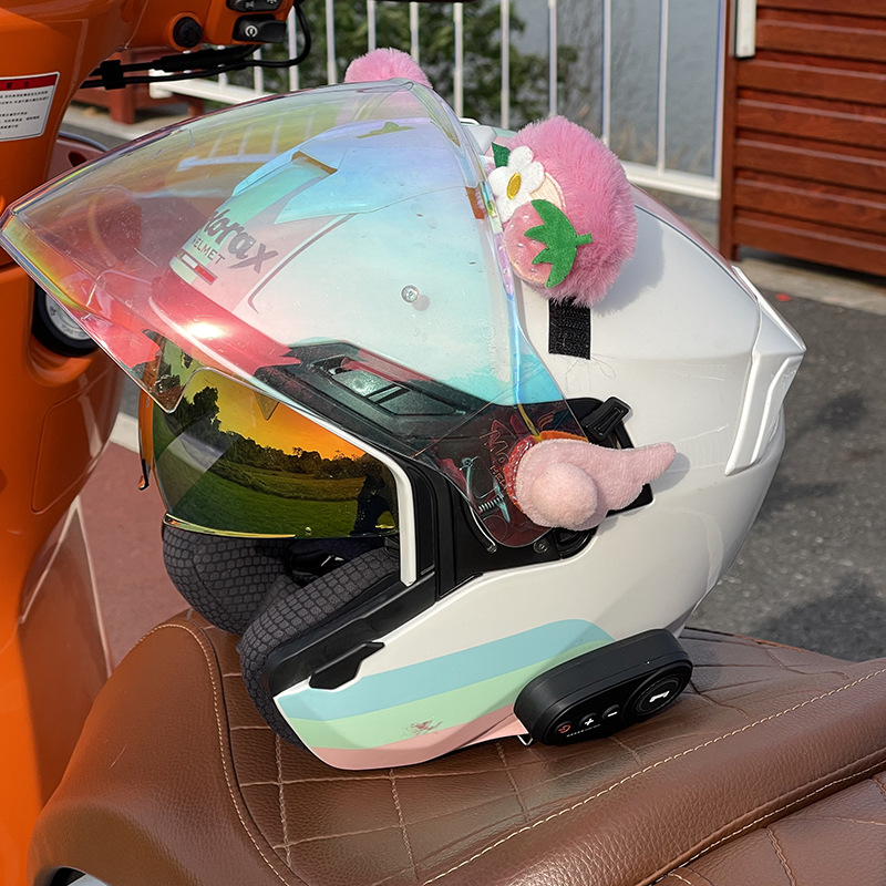 紫色のぬいぐるみの耳のヘルメットはオートバイのヘルメットを飾ります。