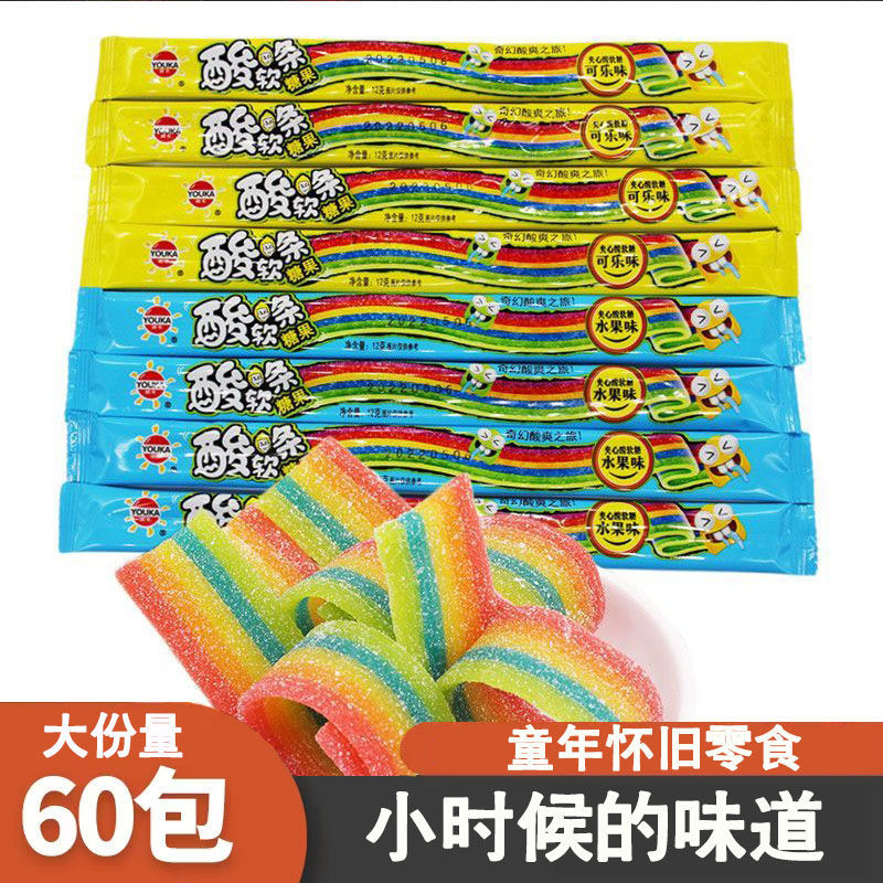 優卡酸軟条サンドイッチソフトキャンディコーラ果物味ゲルキャンディー甘酸っぱい虹長い棒子供の頃のお菓子キャンディー