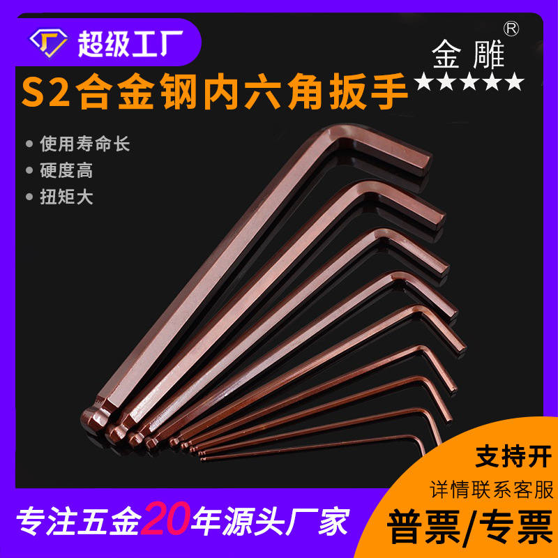 金雕内六角レンチ特硬s2合金鋼六角レンチセット六角ドライバーl型レンチボールヘッド