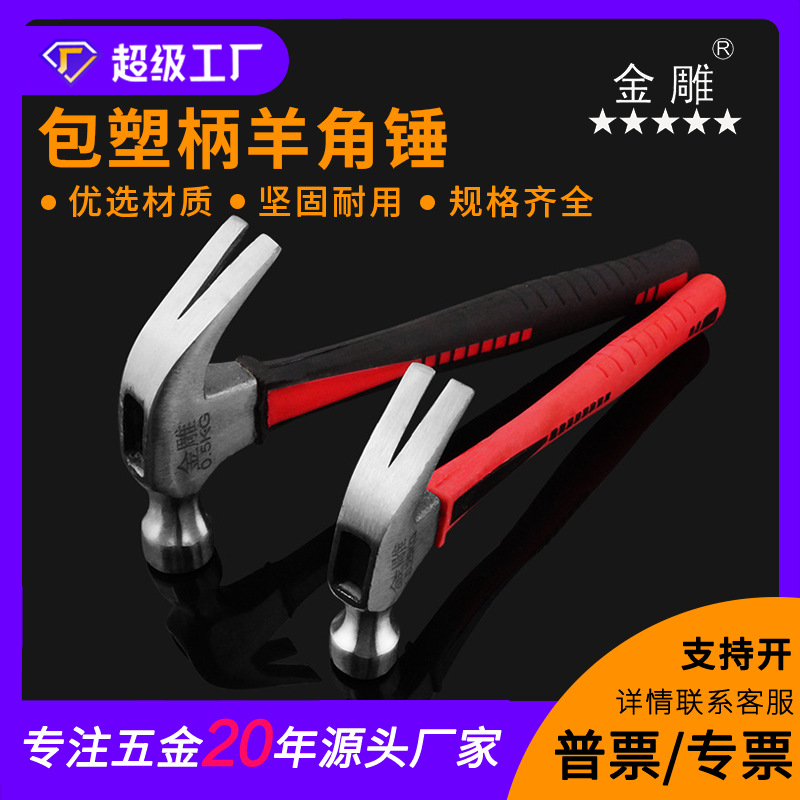 金の彫刻のプラスチックの柄の羊の角のハンマーの大工のハンマーはハンマーのハンマーのハンマーの建築のハンマーの鋼のハンマーの滑り止めの柄を打ってハンマーを打ちます