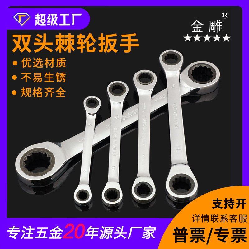 金雕72歯双头固定ラチェットレンチ両方向梅花快速レンチ蒸気机修口両用レンチ