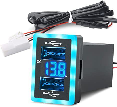 デュアルusb qc3.0急速充電器デジタル電圧計6.4aはトヨタ1.3x0.9インチに適している