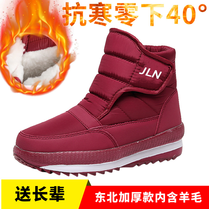 冬の新型の雪地靴の女性のお母さんの綿の靴のファッションの中で老年の女性の綿の靴とベルベットの厚い百合の女性の綿の靴