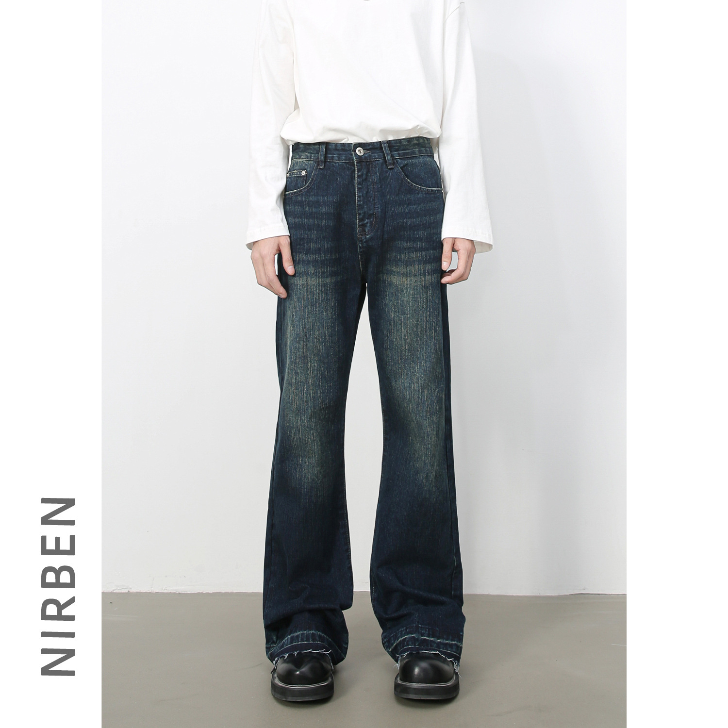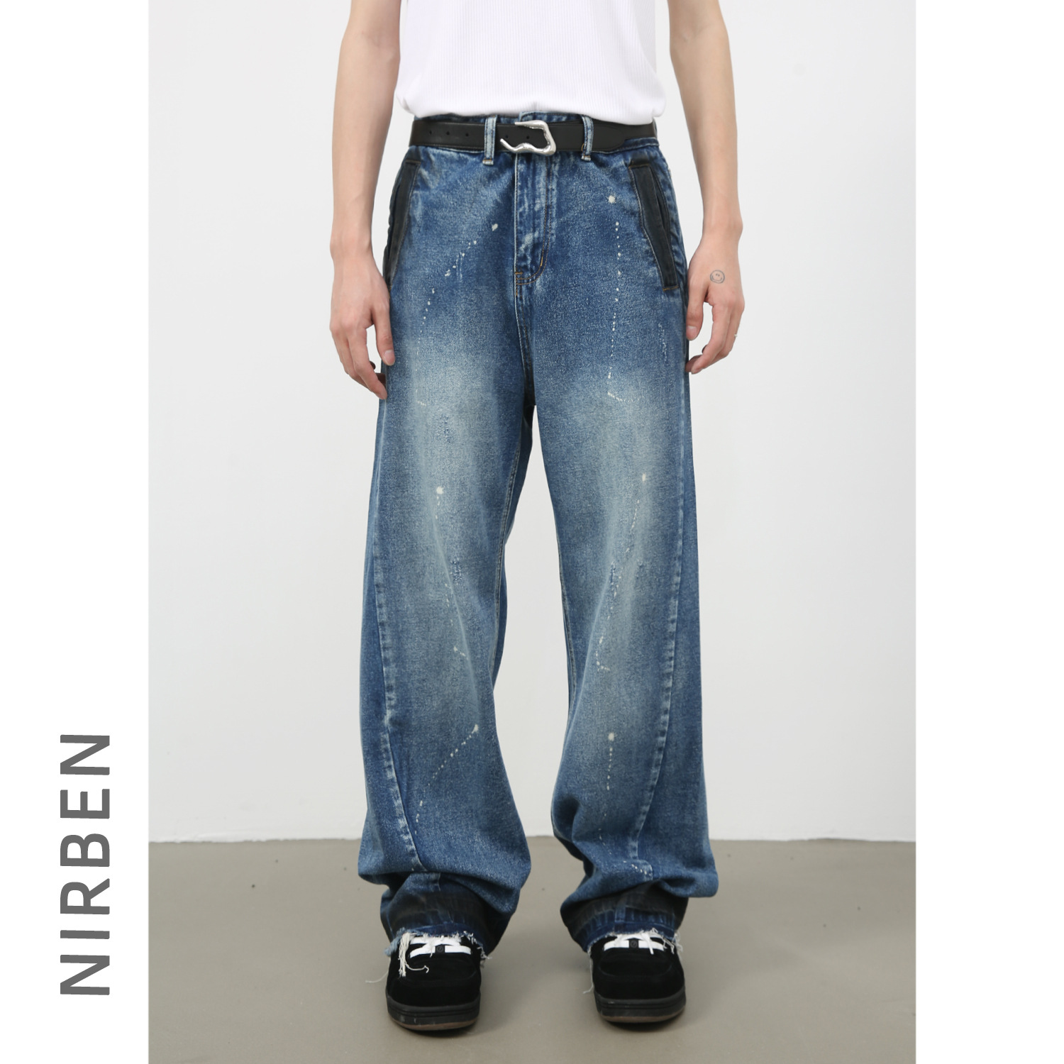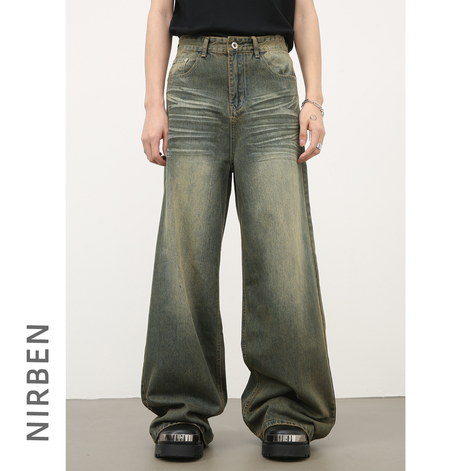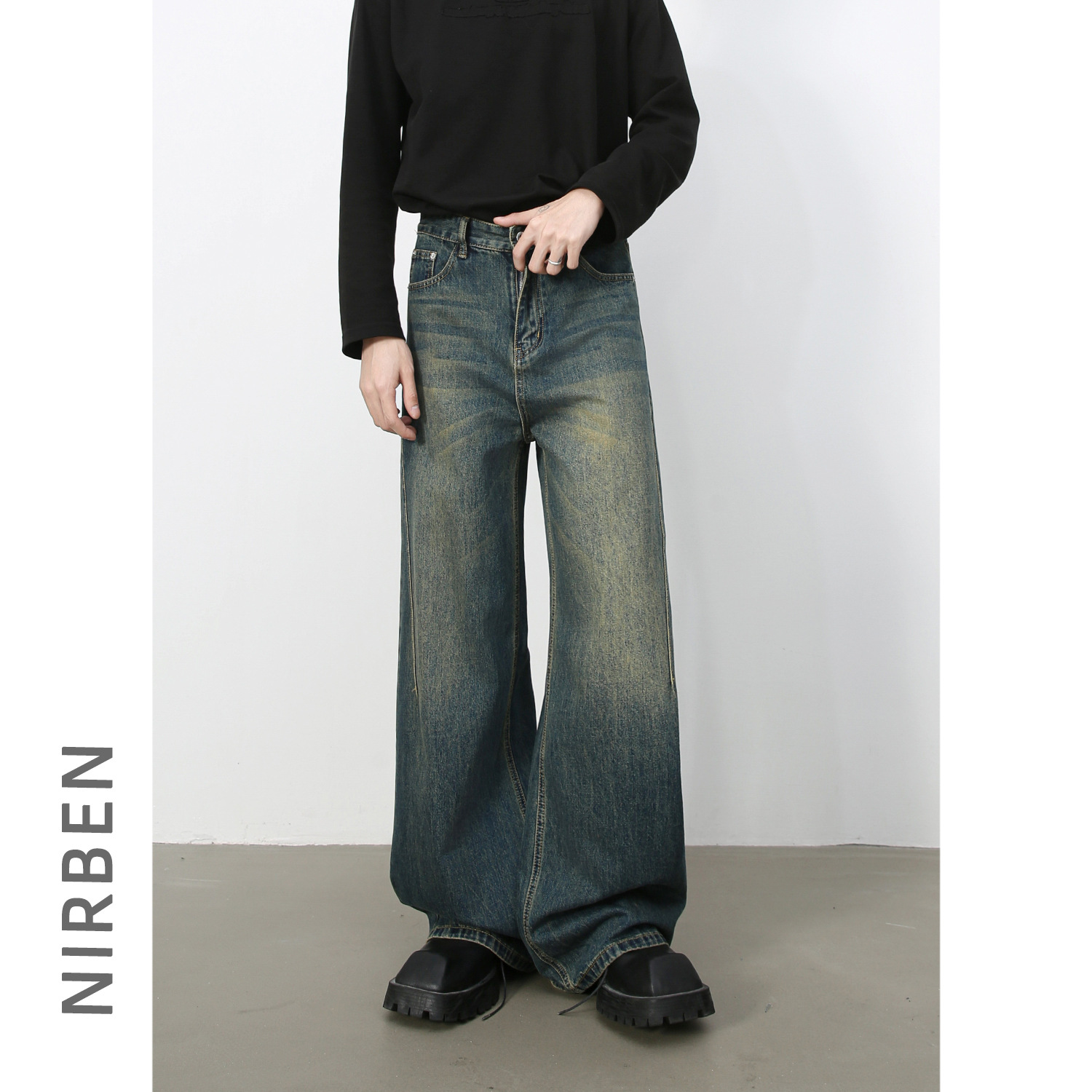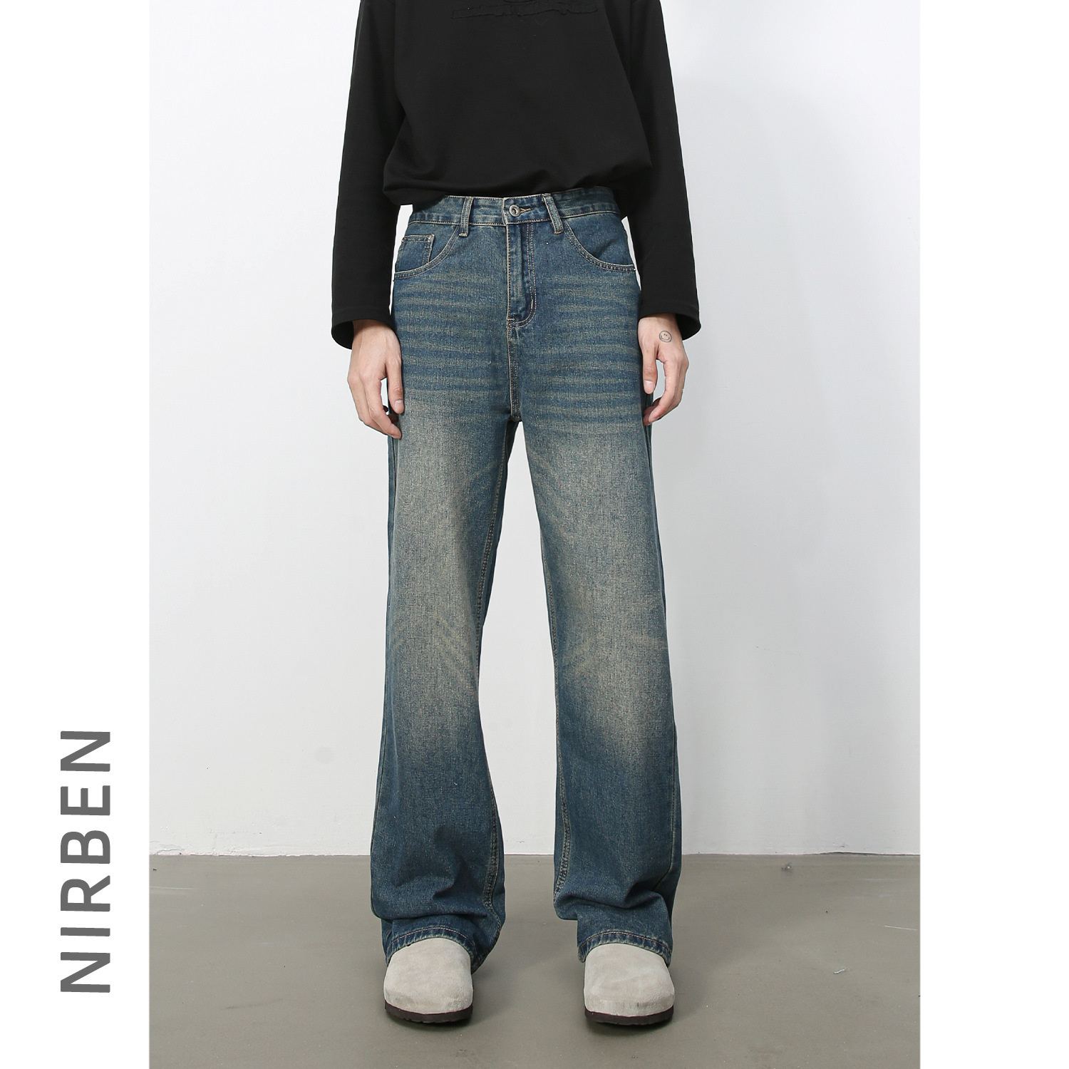 Nirbenカウボーイ | アメリカのレトロな古い水洗いジーンズ男高街直筒ゆるいワイド脚パンツ