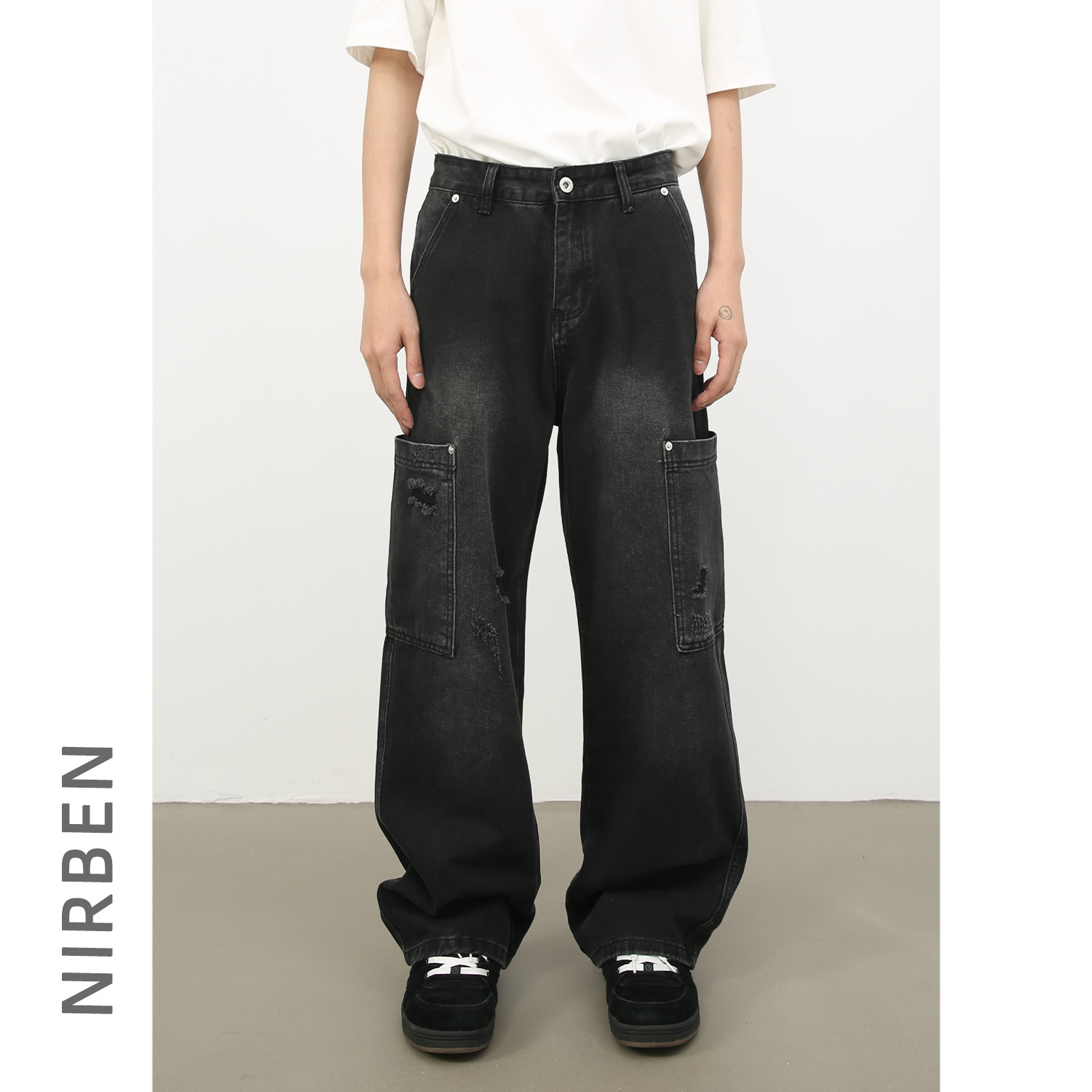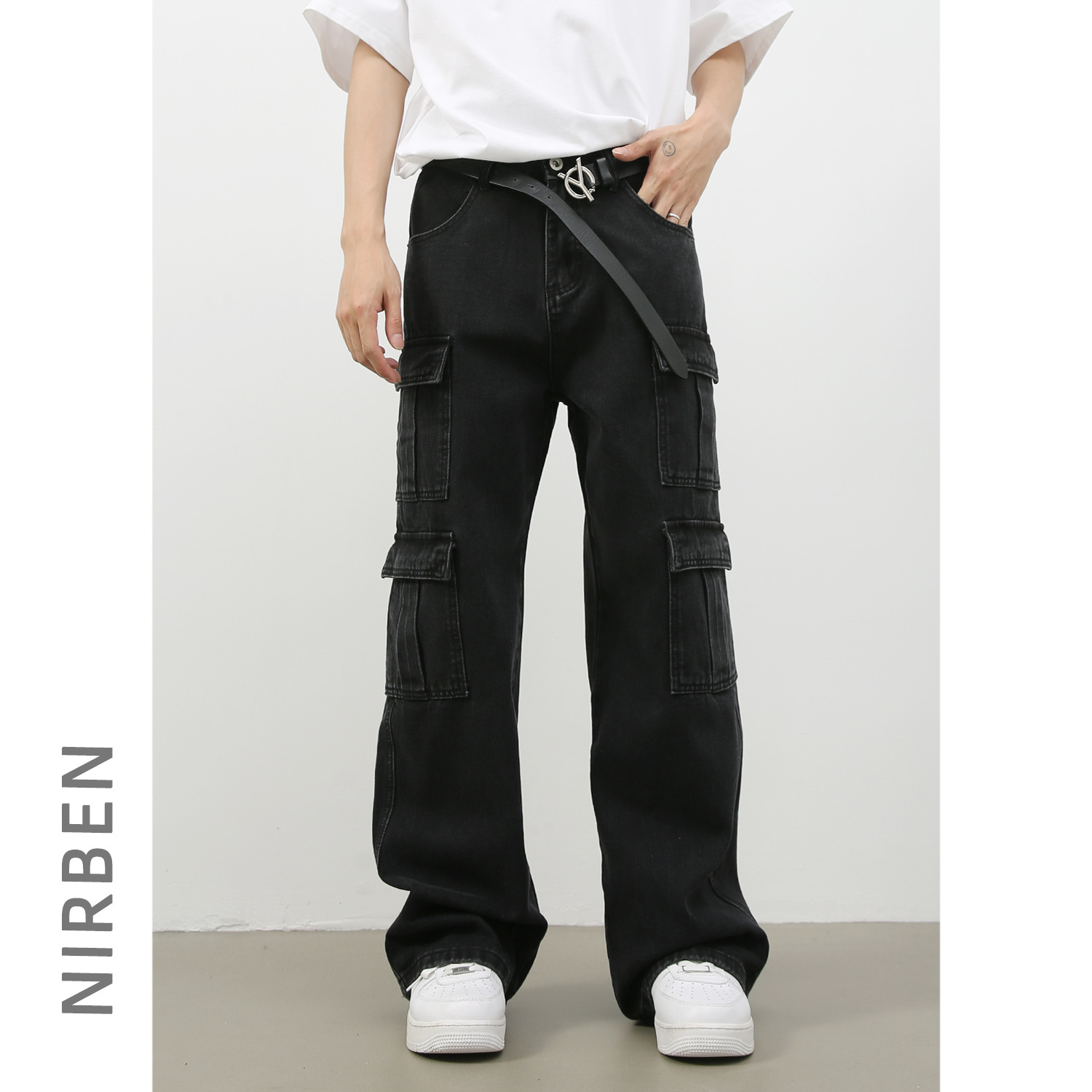 Nirbenカウボーイ | アメリカのファッションブランド多ポケット工装ズボン高街風ゆるいストレートジーンズ男
