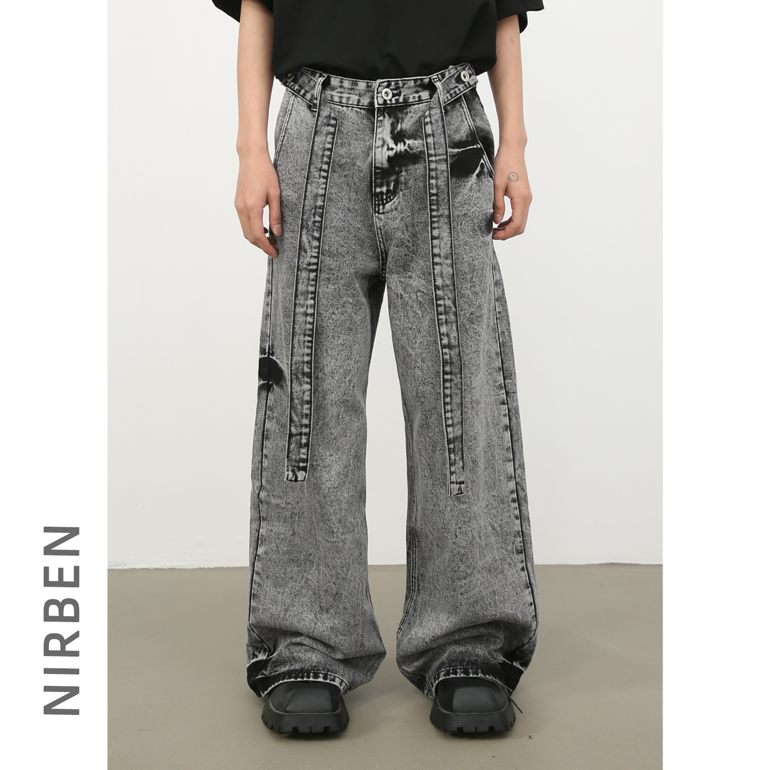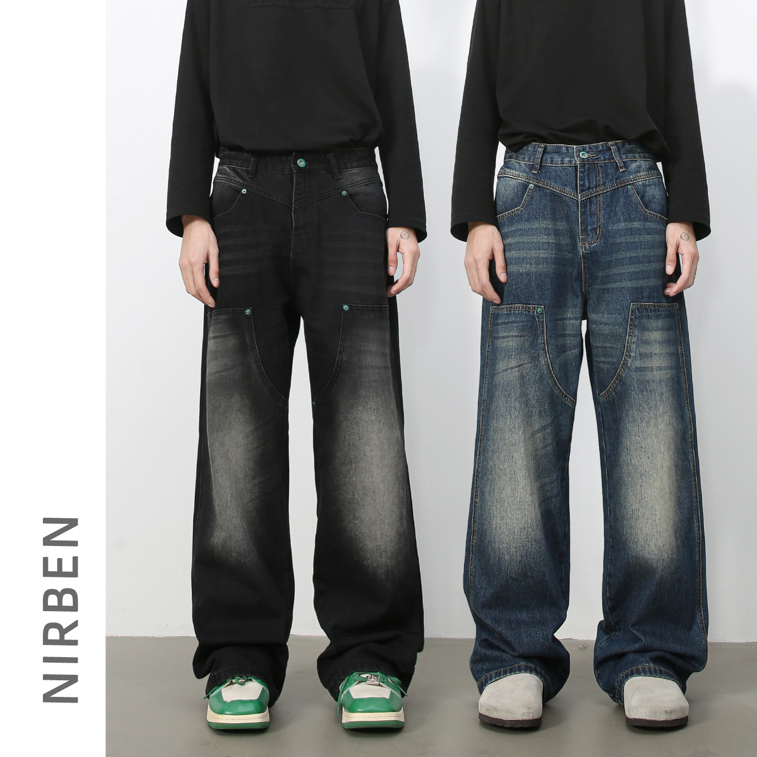 Nirbenデニム | アメリカのレトロな工装ジーンズ男高街vibe潮牌広脚ズボンゆるいストレートパンツ
