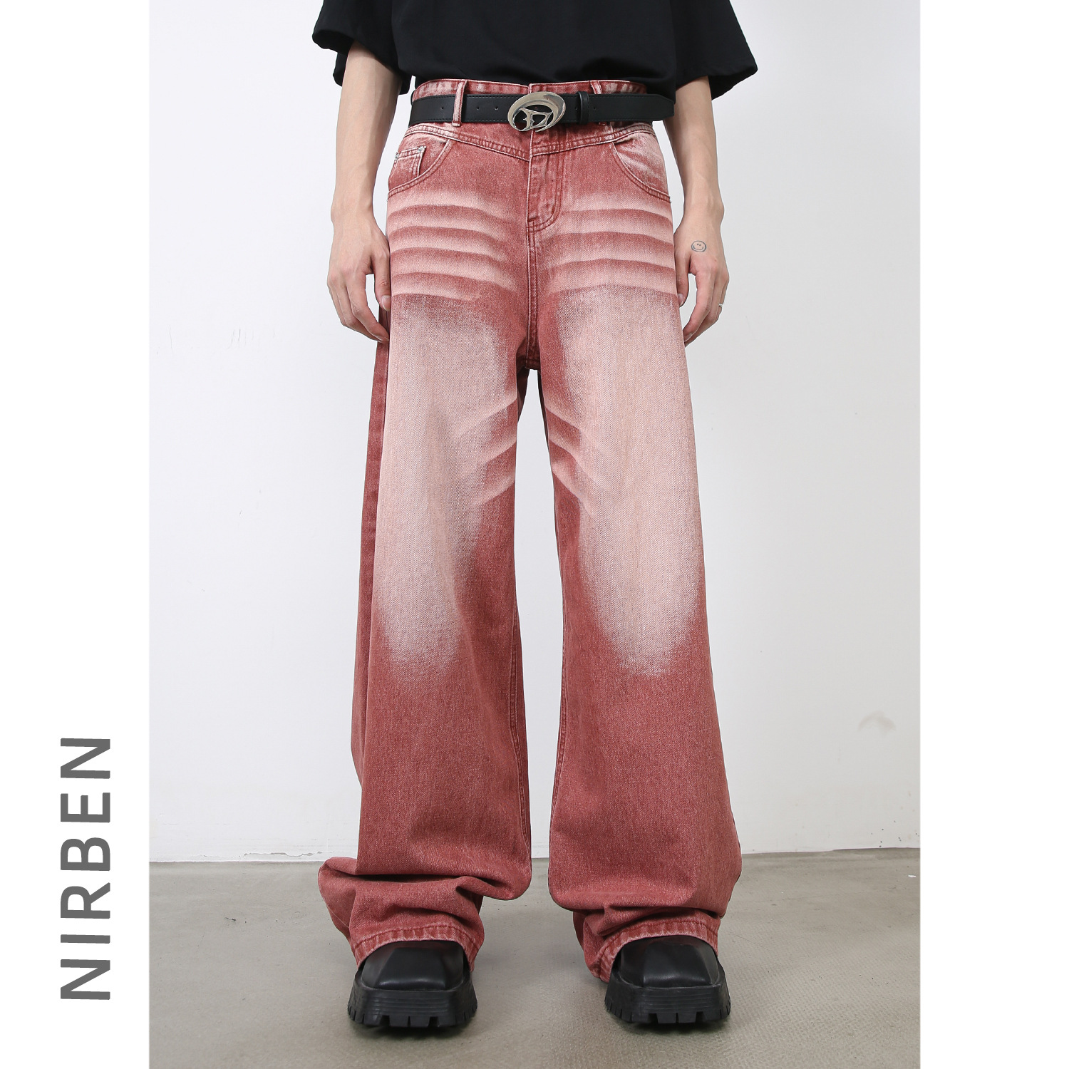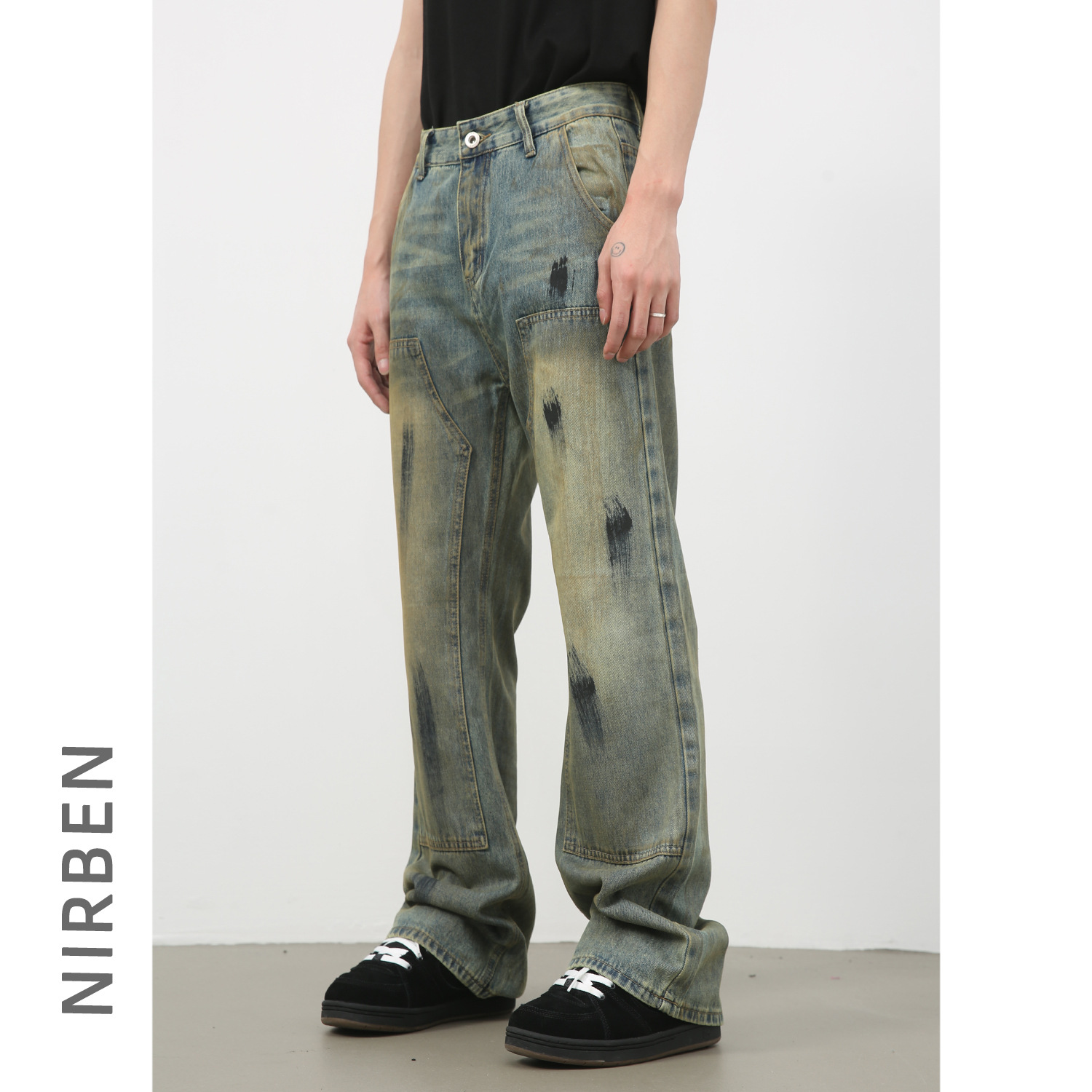 Nirbenデニム | アメリカのヒップホップザカラーのマイクロラップジーンズ男性ヴィンテージ直筒高街広脚ズボン