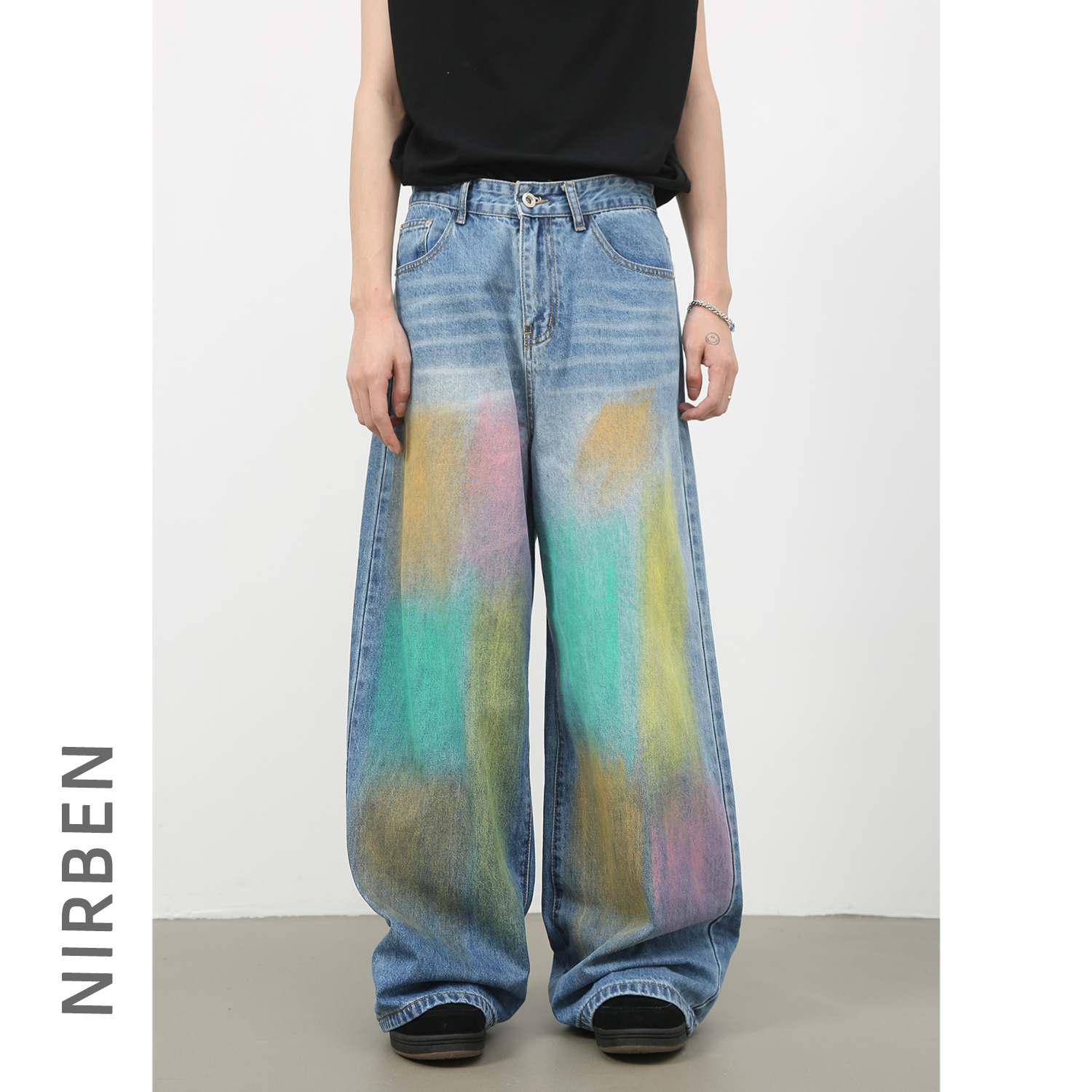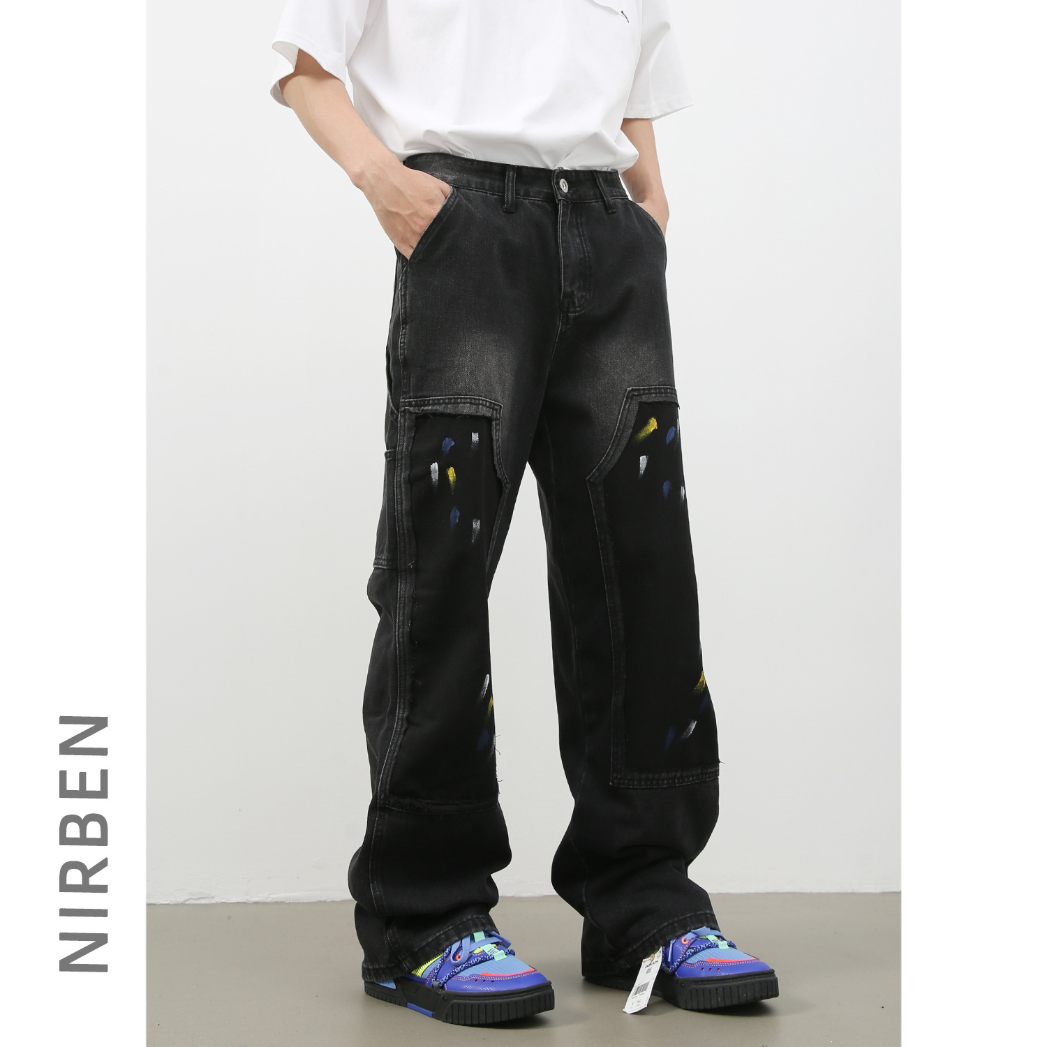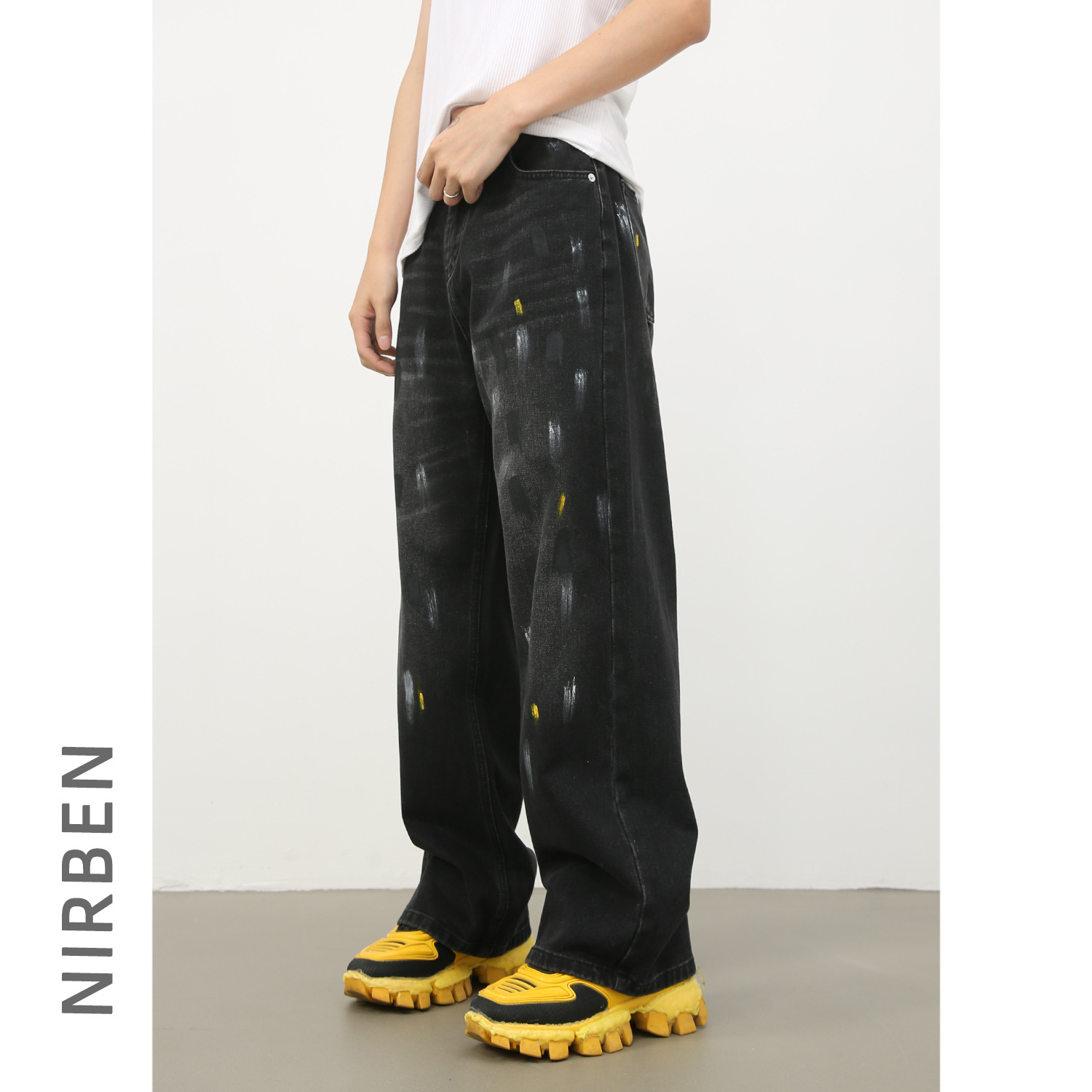 Nirbenデニム | 新商品韓国版個性漆点ジーパン男ゆるい直筒潮牌高街百合長ズボン