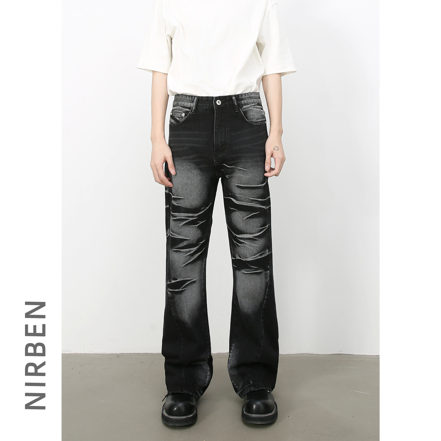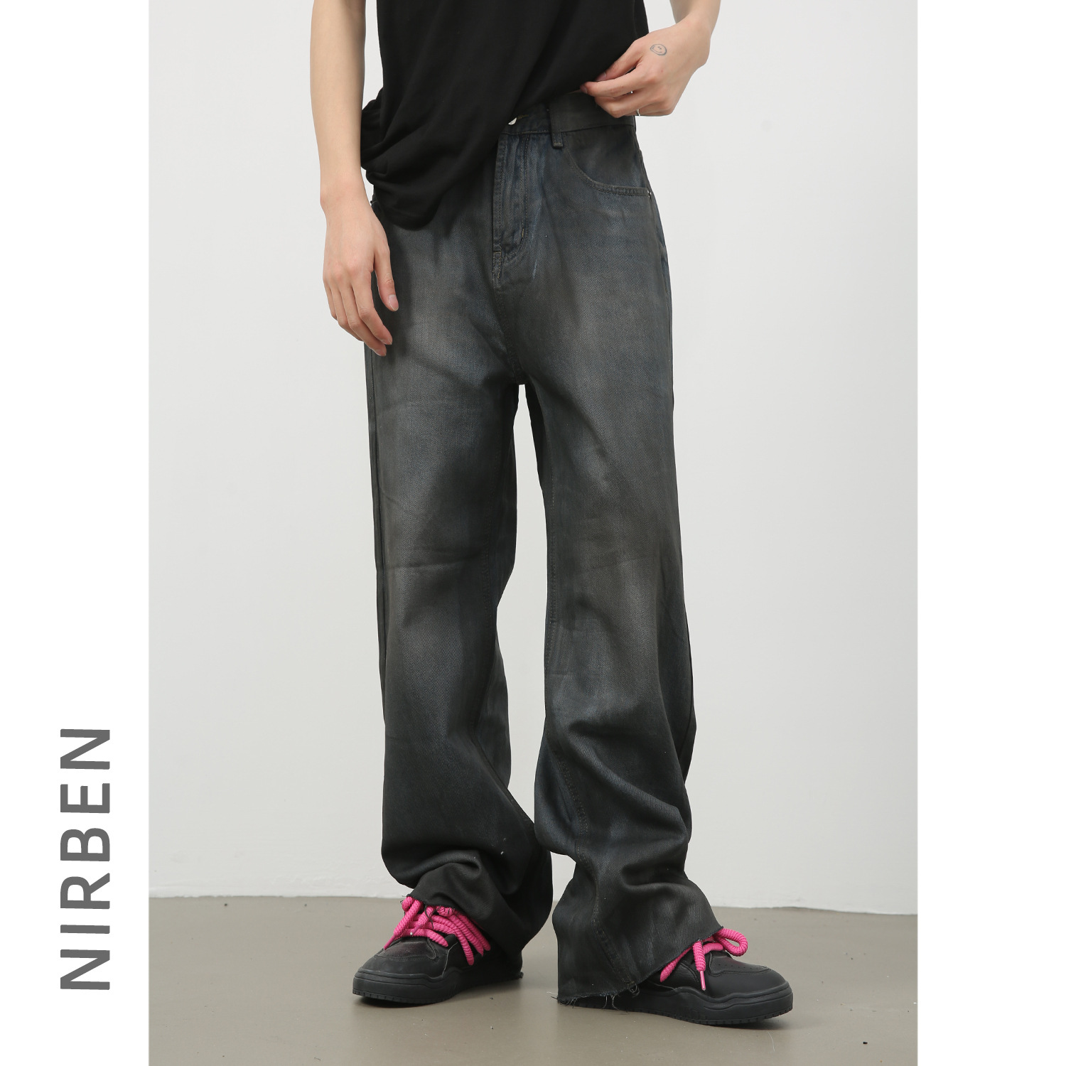 Nirbenカウボーイ | レトロコーティング広脚ジーンズ男新商品潮牌高街は古いゆるいストレートパンツを作る