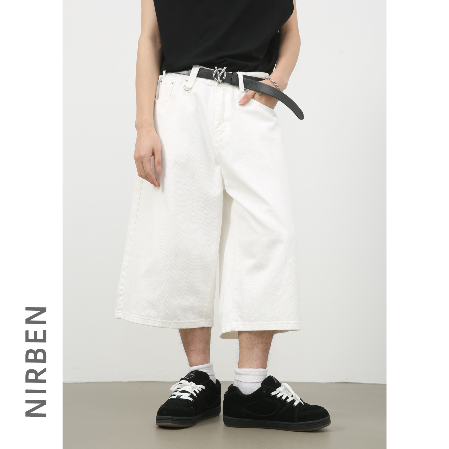 Nirbenデニム | ゆるい七分カジュアルジーンズ男性夏の新しいアメリカのゆるいストレートパンツ