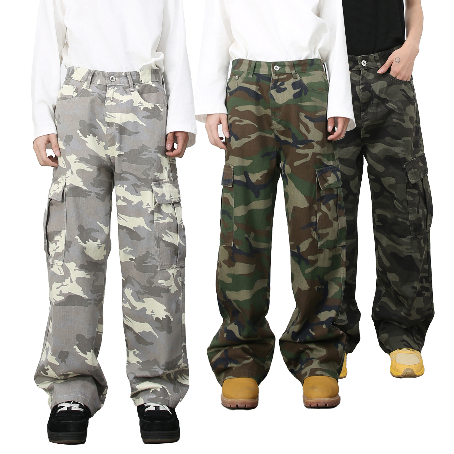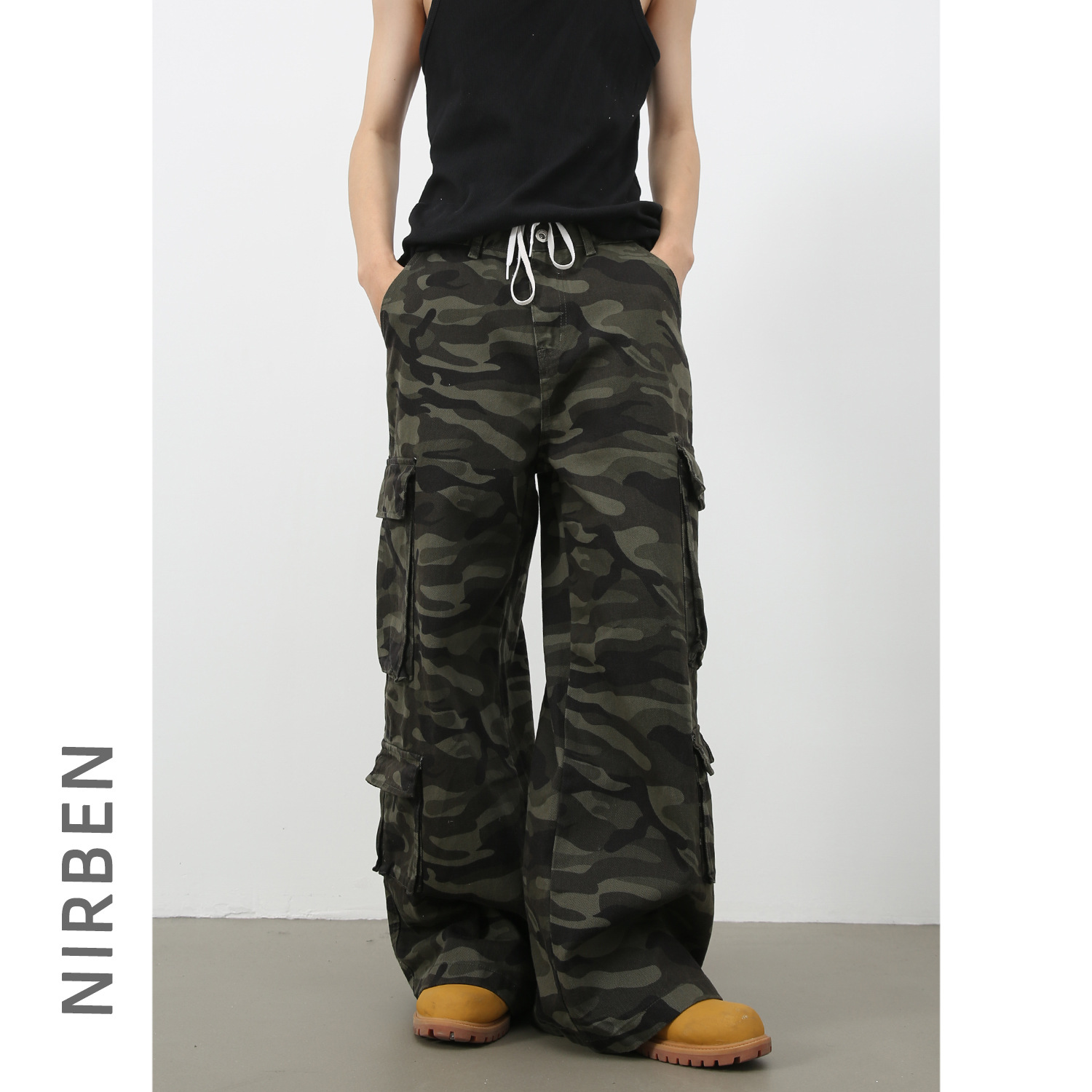 Nirbenカウボーイ | アメリカのレトロvibe迷彩工装ズボン高街直筒ゆるい広脚モップジーンズ