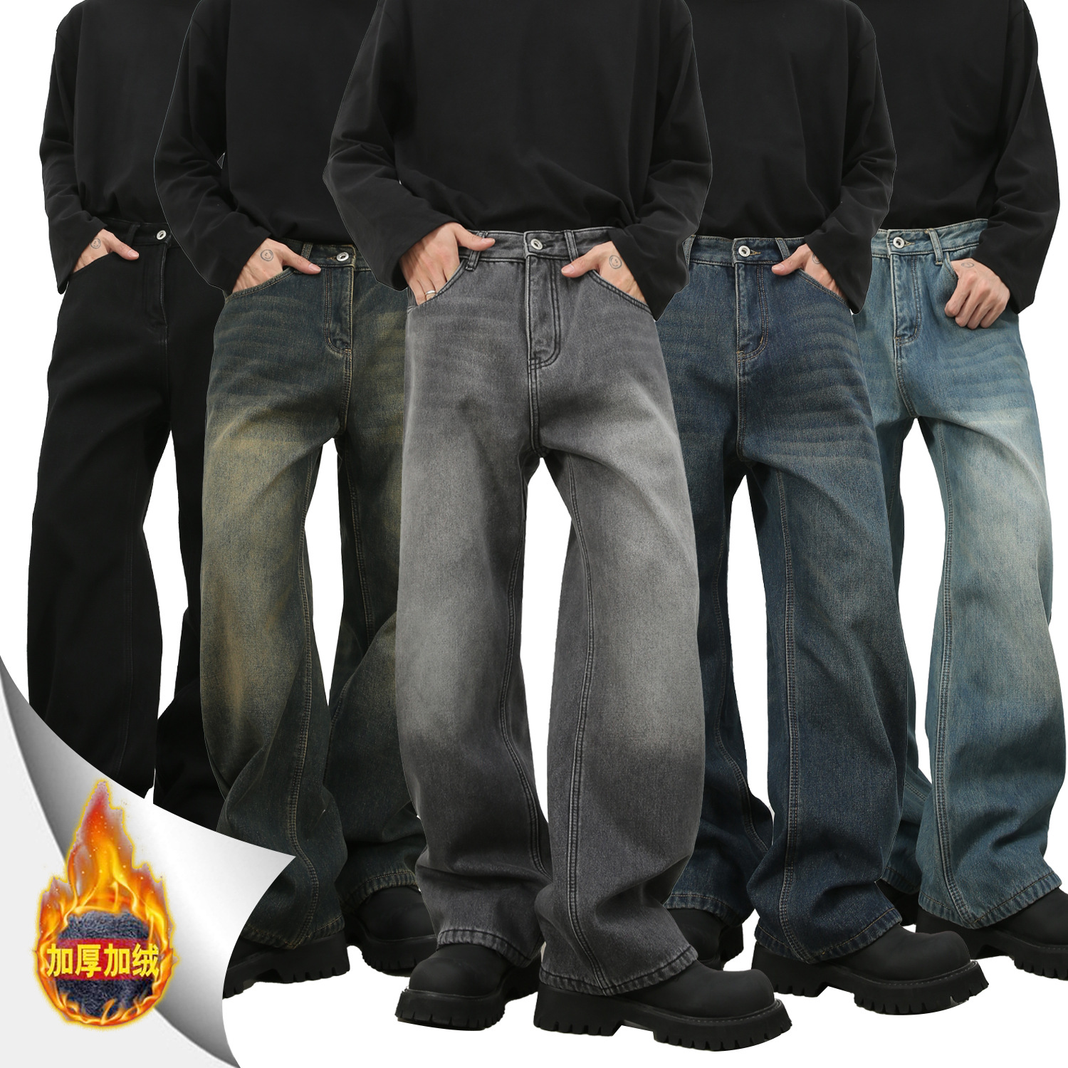 Nirbenデニム | 秋冬の新型ベルベットジーンズ男性アメリカのゆるいストレートinsファッションブランドのワイドパンツ