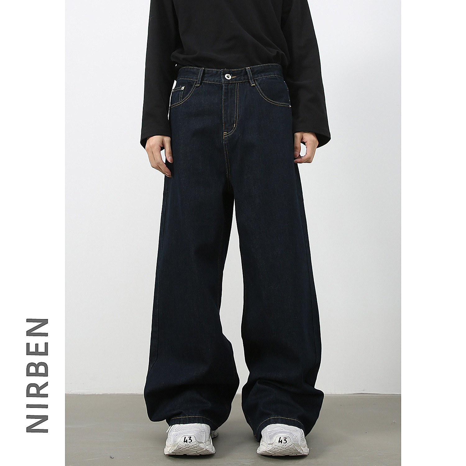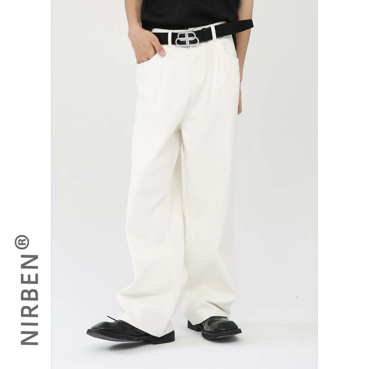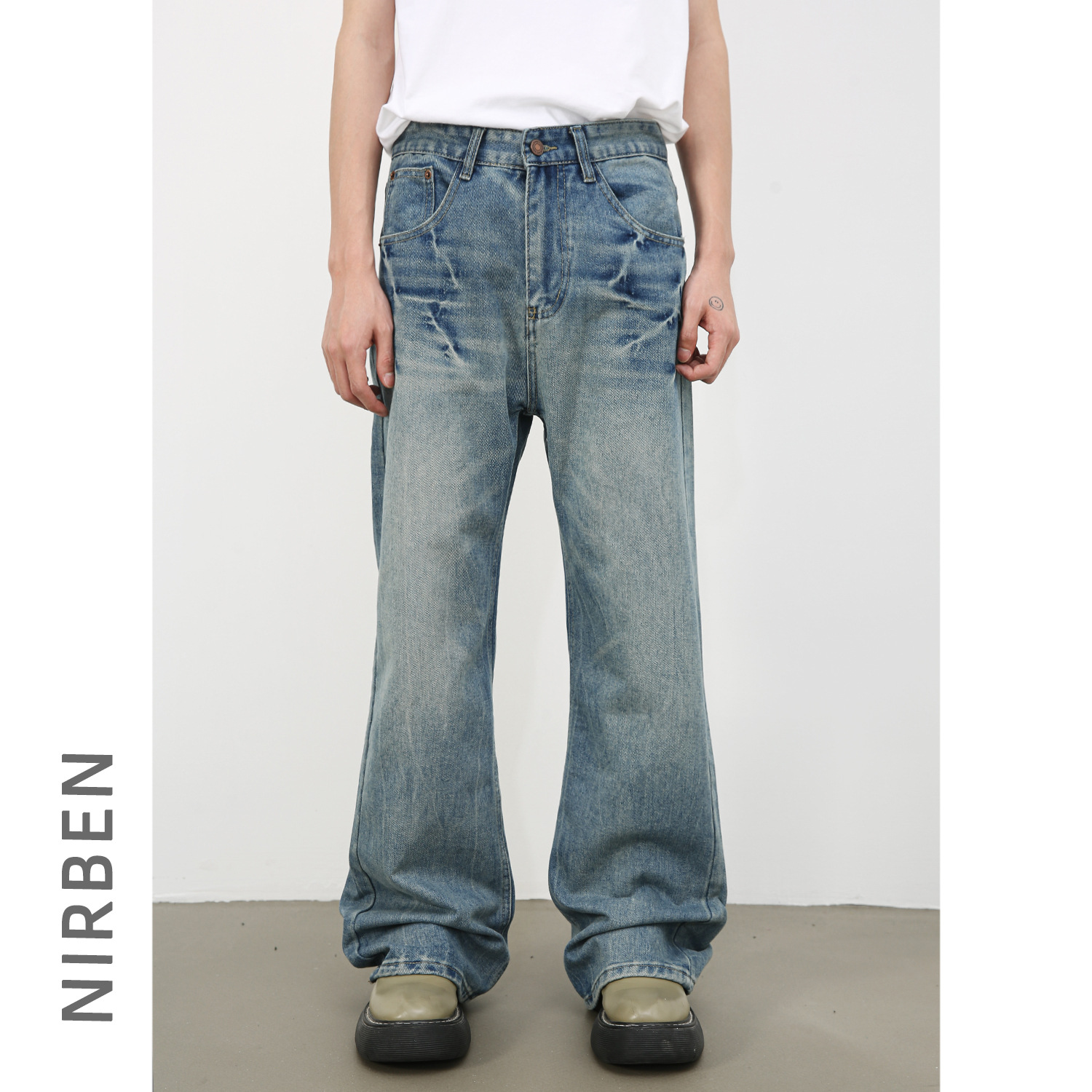 nirben | アメリカンレトロスタイルの男性用シミターパンツ、ニッチなデザイン、ワイドレッグ、ゆったりとした万能なデニムパンツ