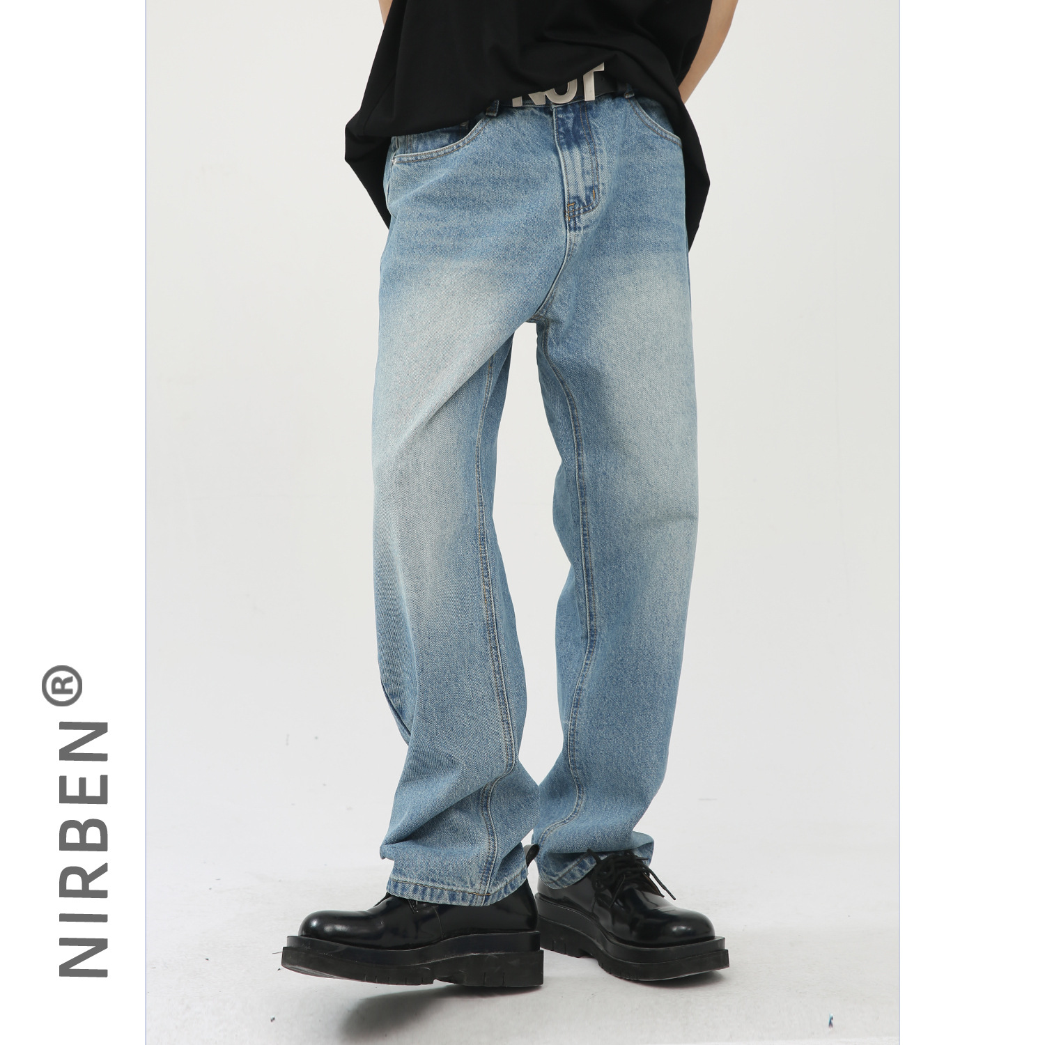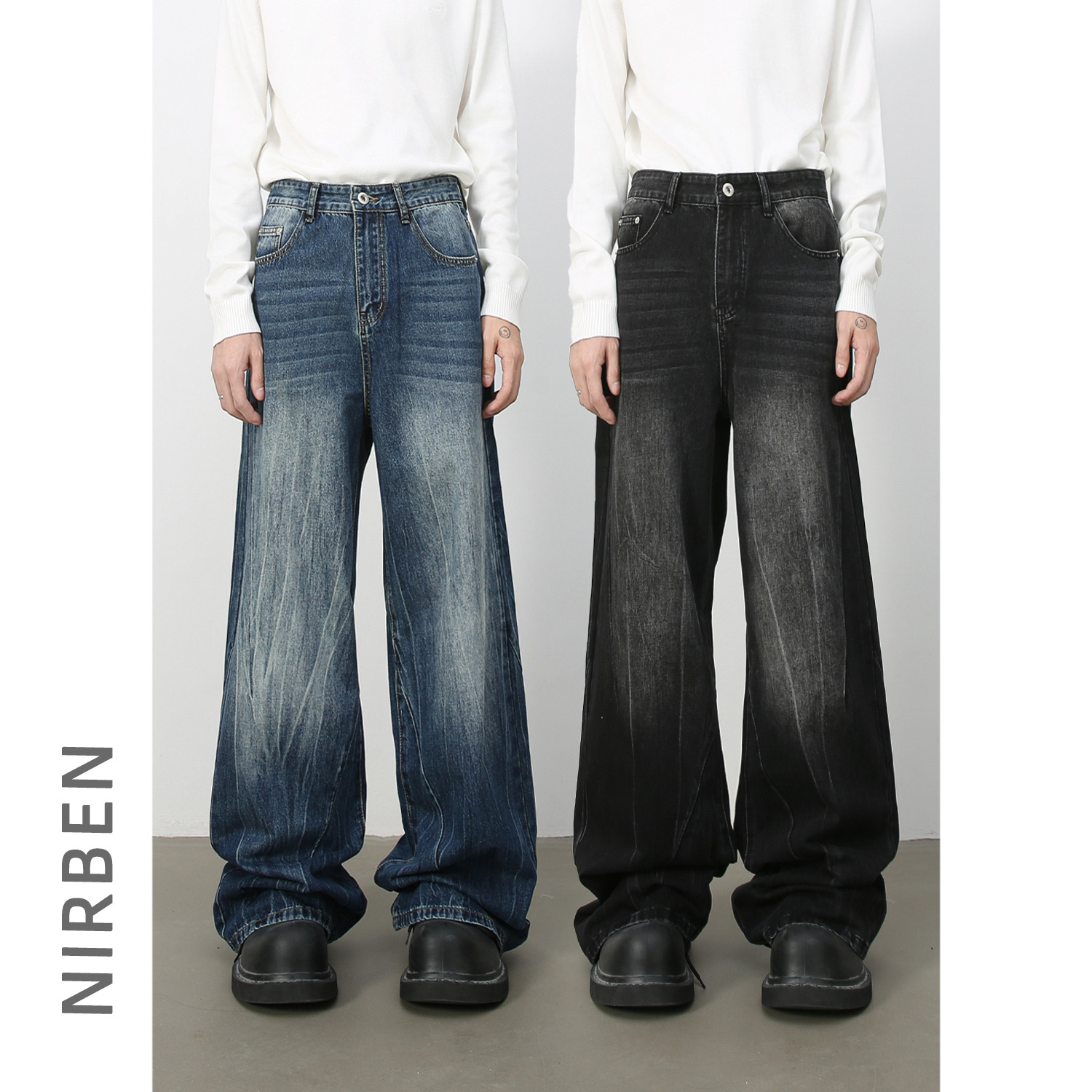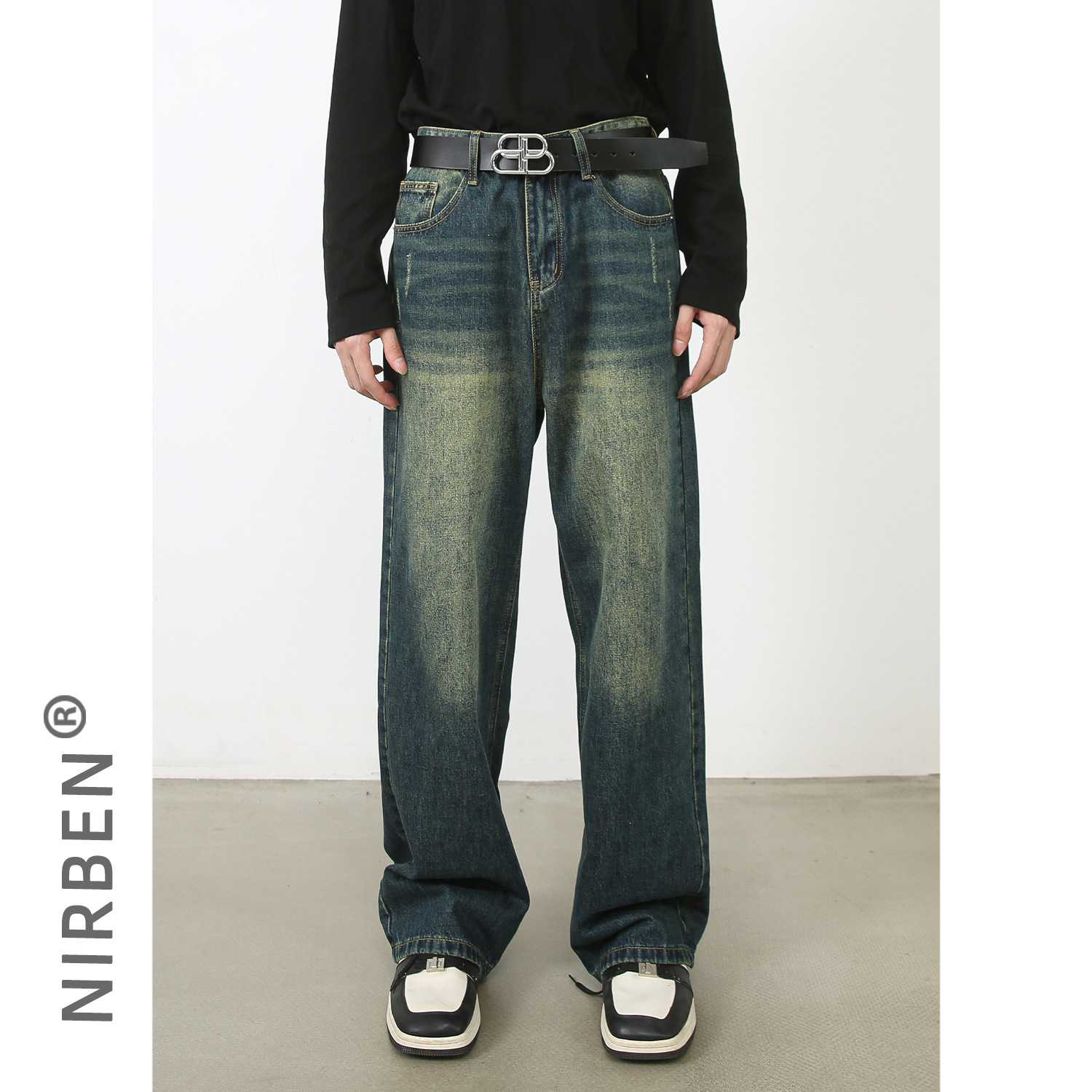Nirbenデニム | アメリカのレトロでゆったりしたワイドジーンズ男性のデザイン感高級感のあるごろつきが街のズボンを揚げます。